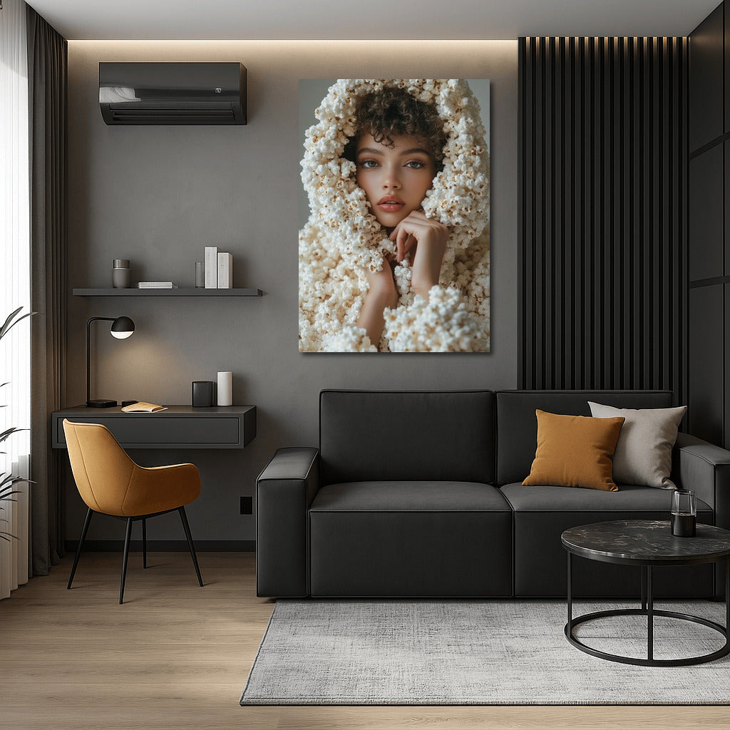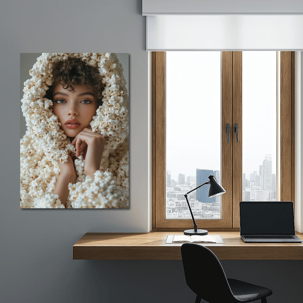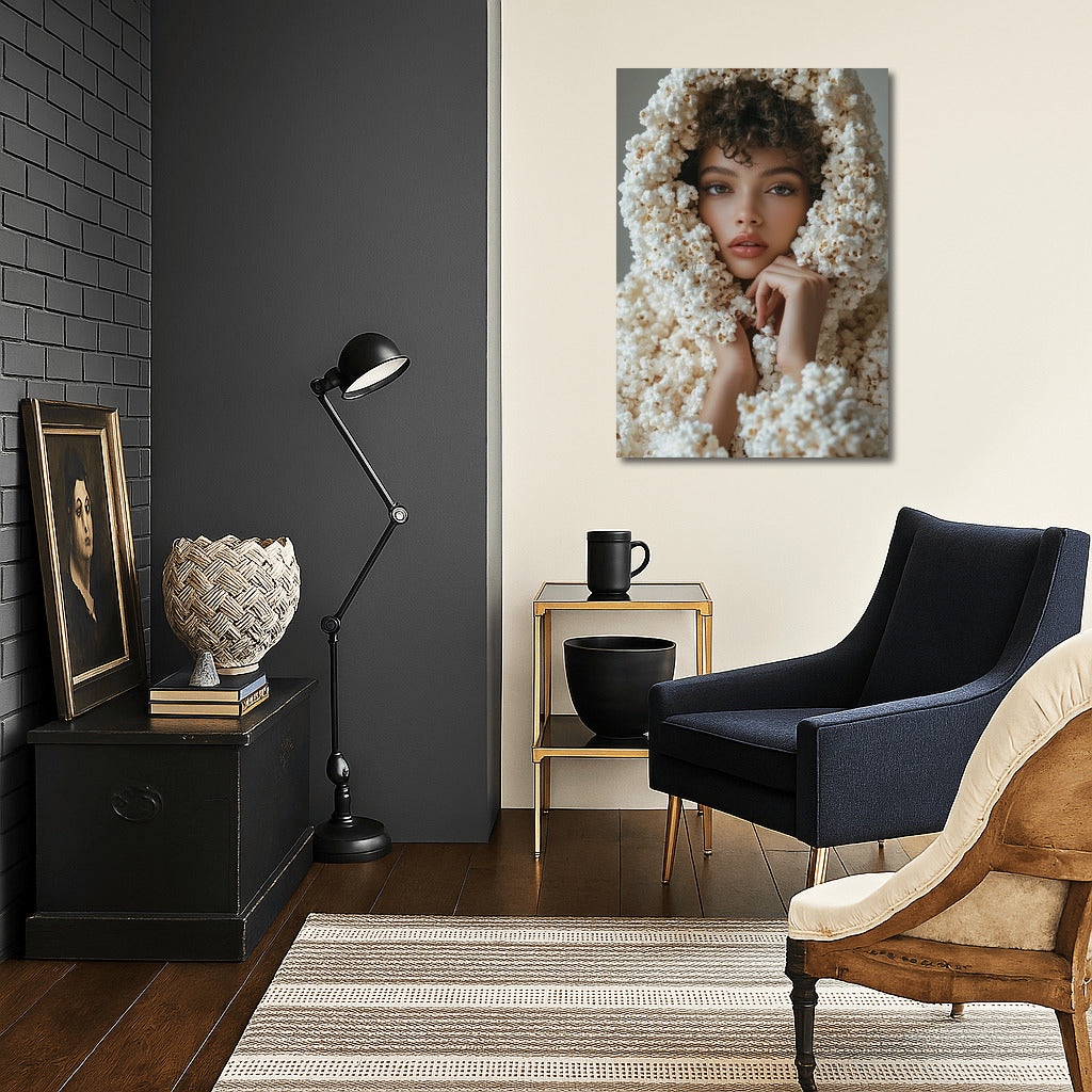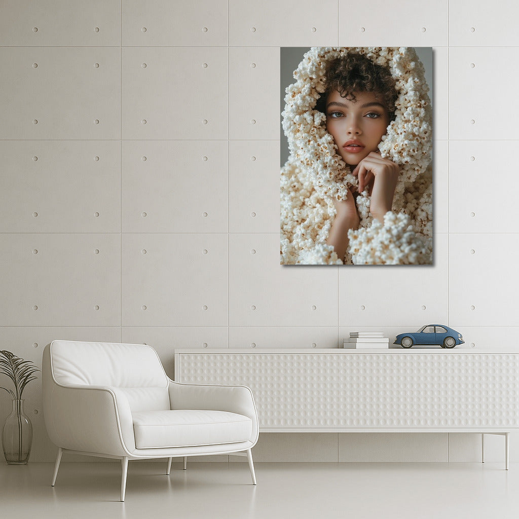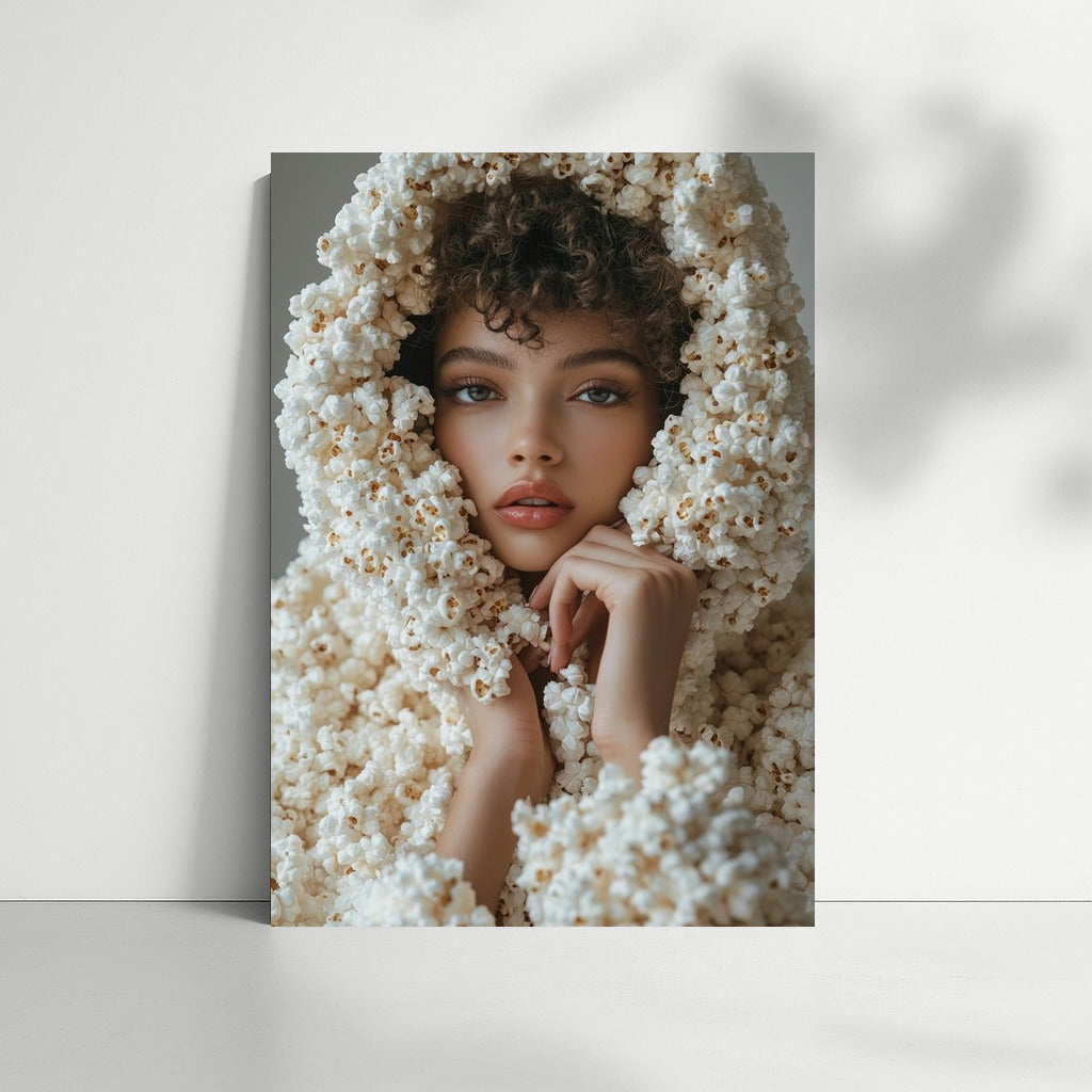 Popcorn and Dreams: An art poster where tenderness and whimsy come together in a unique look. Wall art for the brave! See more from the collection: Wall Art with Women