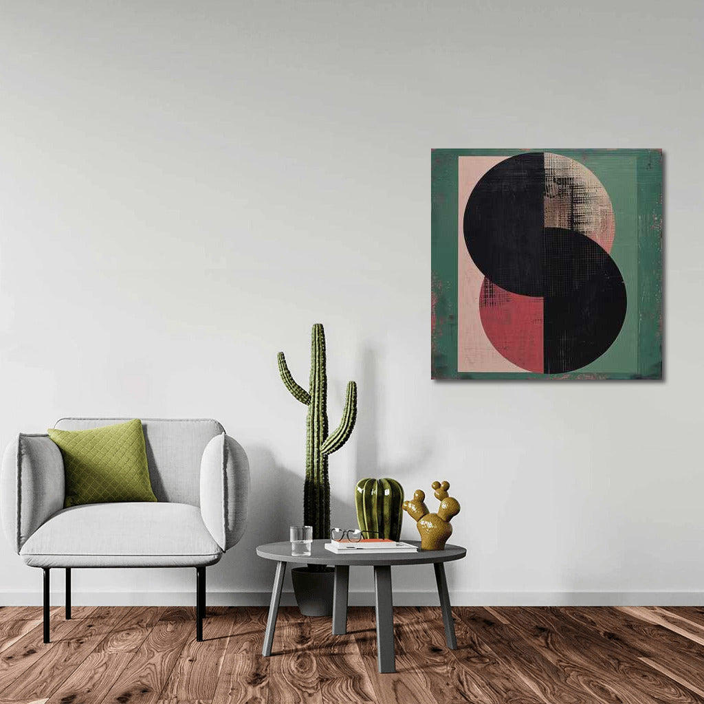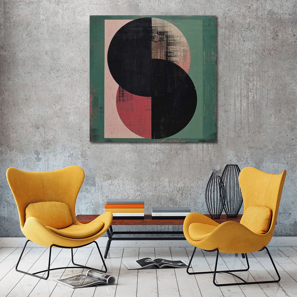 Captivating minimalist wall art: the intersection of spheres, like a rare solar eclipse, attracts attention. See more from the collection: Minimalism Art