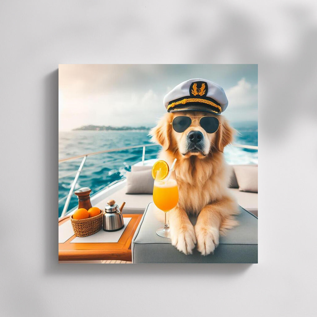 Poster with a dog on a luxury yacht: the wind of freedom, style and sea adventures in one painting masterpiece of wall art! See more from the collection: Animals Art