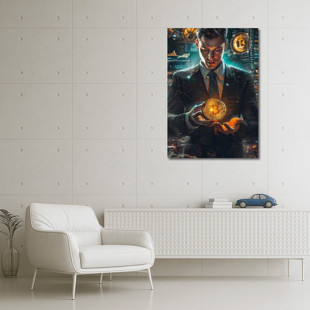 Cryptocurrency Glow: The Digital Future in Your Hands Wall Art