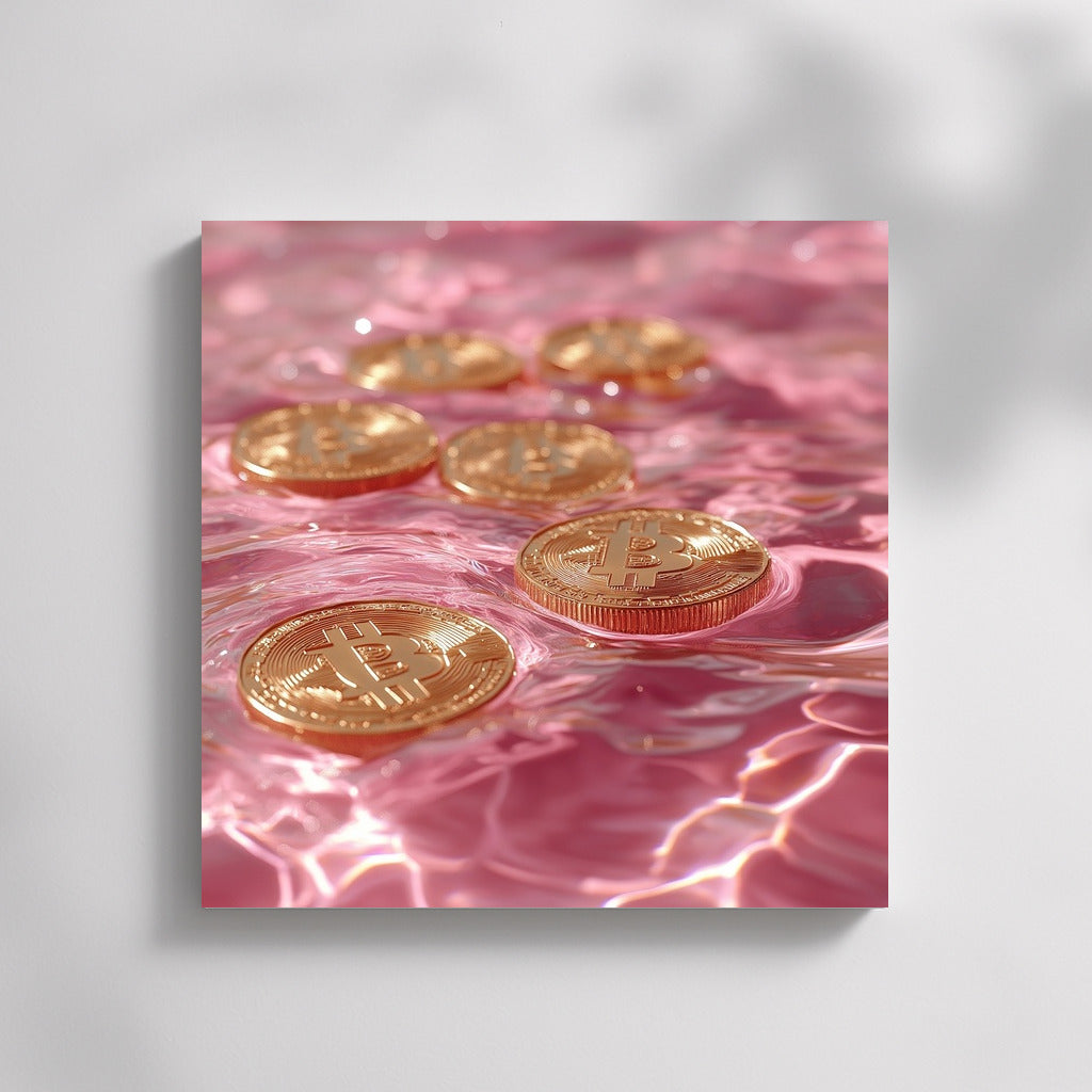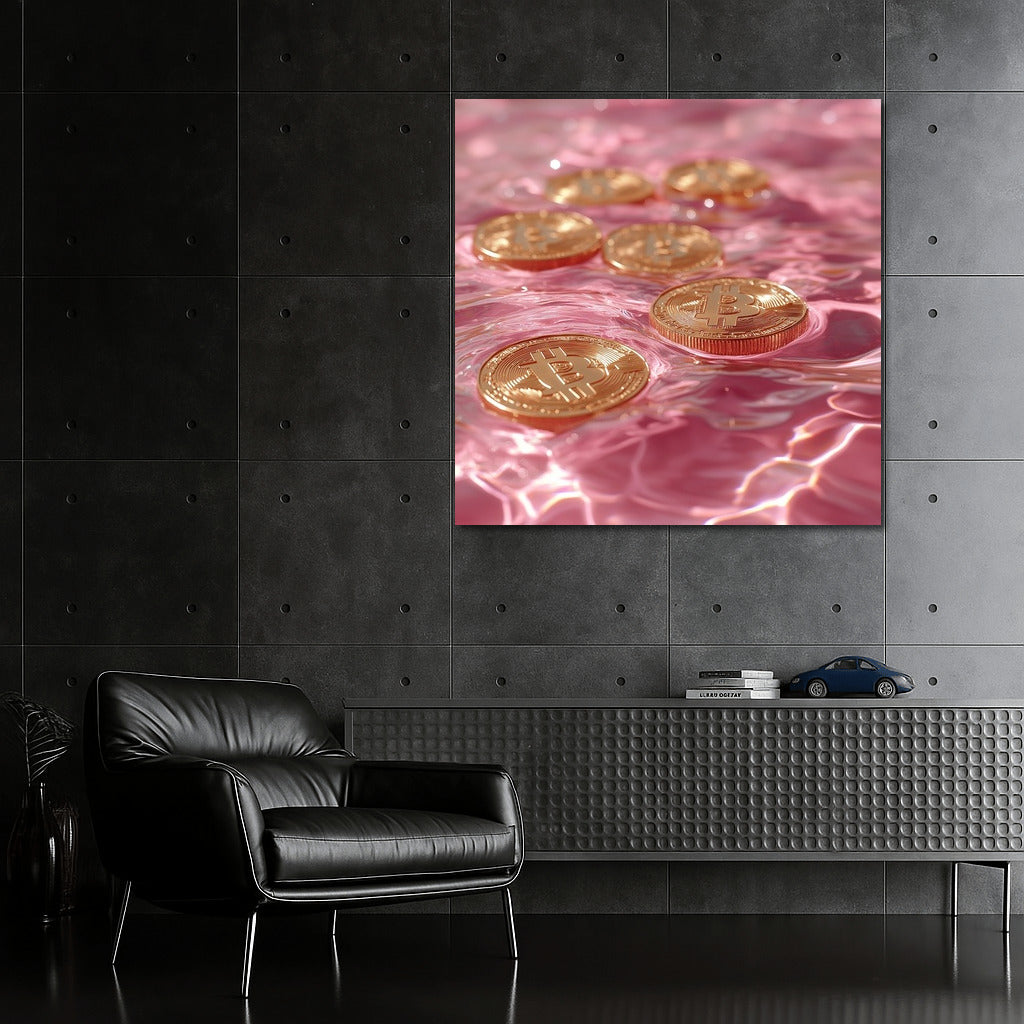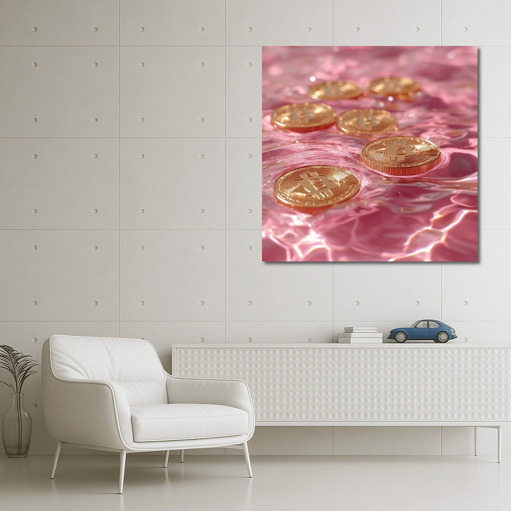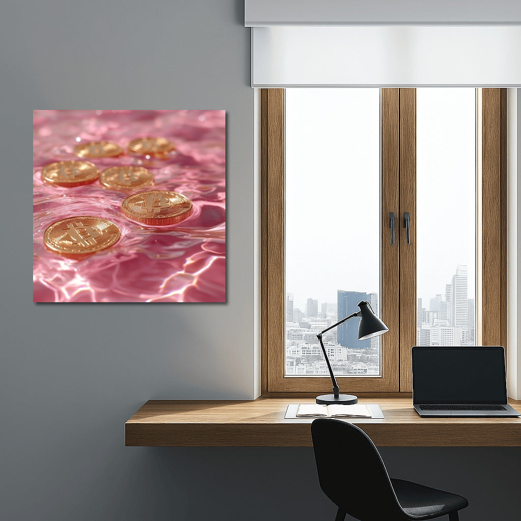 Bitcoin poster on pink waves. Wall art that combines finance and aesthetics. Perfect for a modern interior! See more from the collection: Cryptocurrency Art