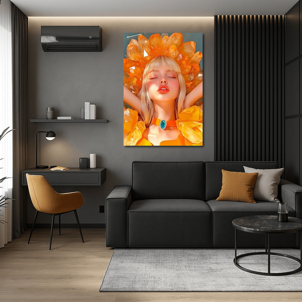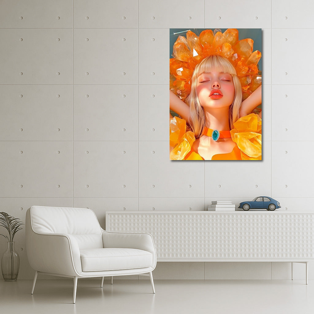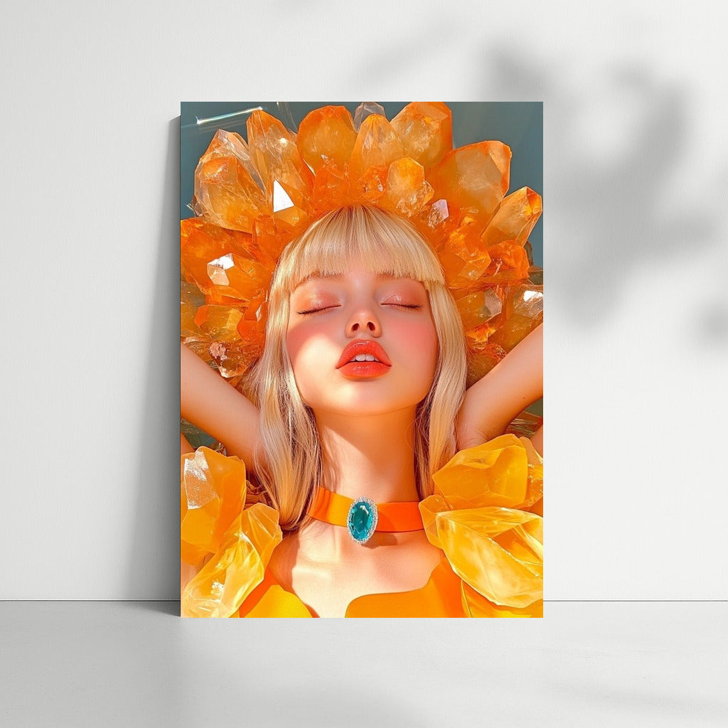 Solar Aura Poster: Vibrant wall art featuring an abstract figure framed by crystals. Inspiration and light! See more from the collection: Wall Art with Women