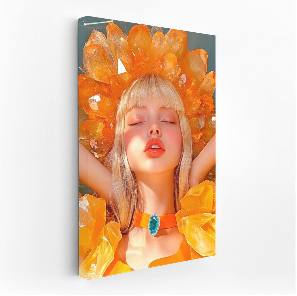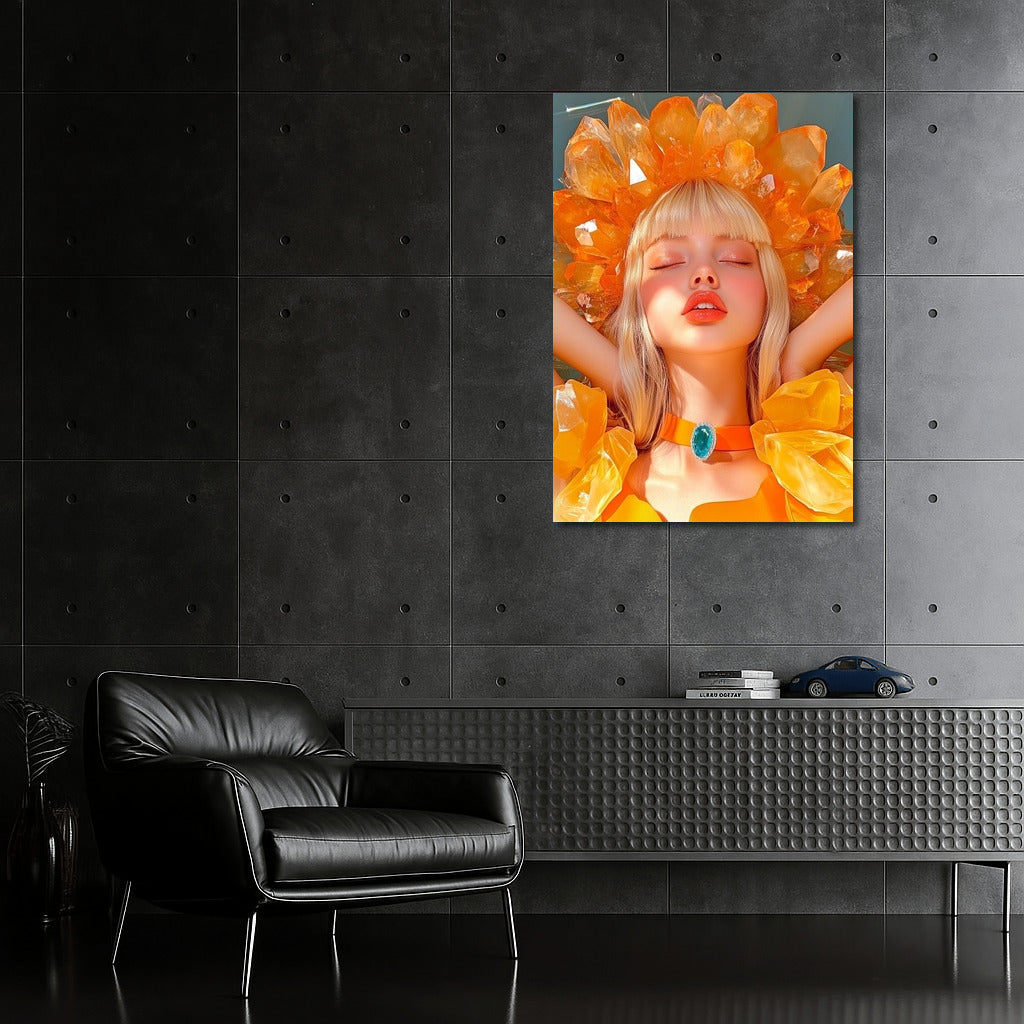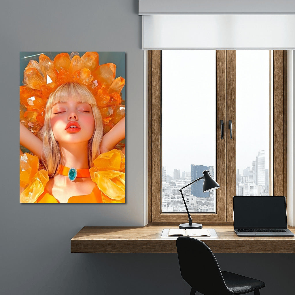 Solar Aura Poster: Vibrant wall art featuring an abstract figure framed by crystals. Inspiration and light! See more from the collection: Wall Art with Women