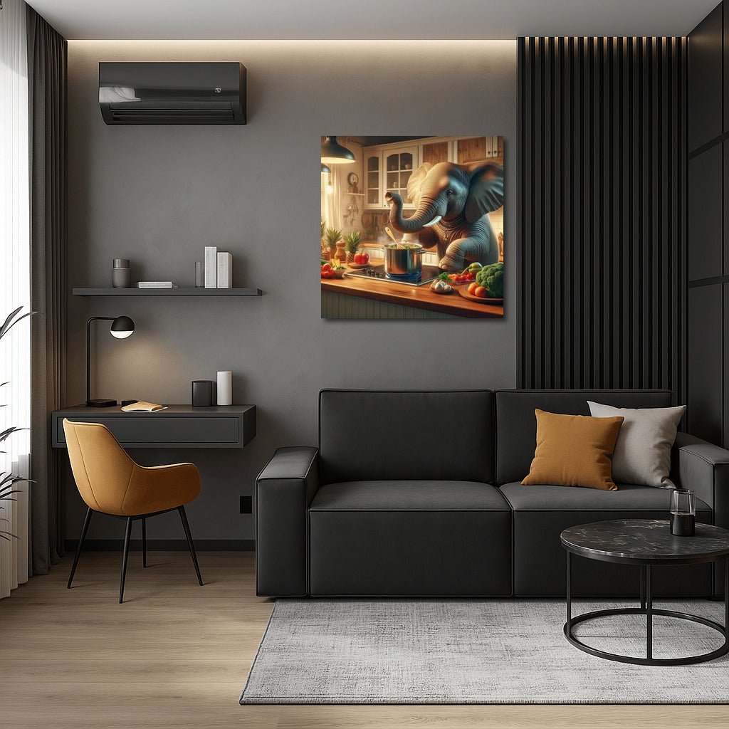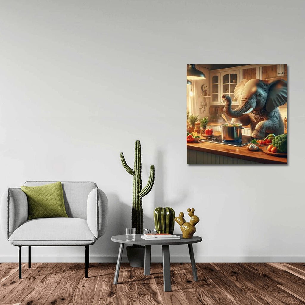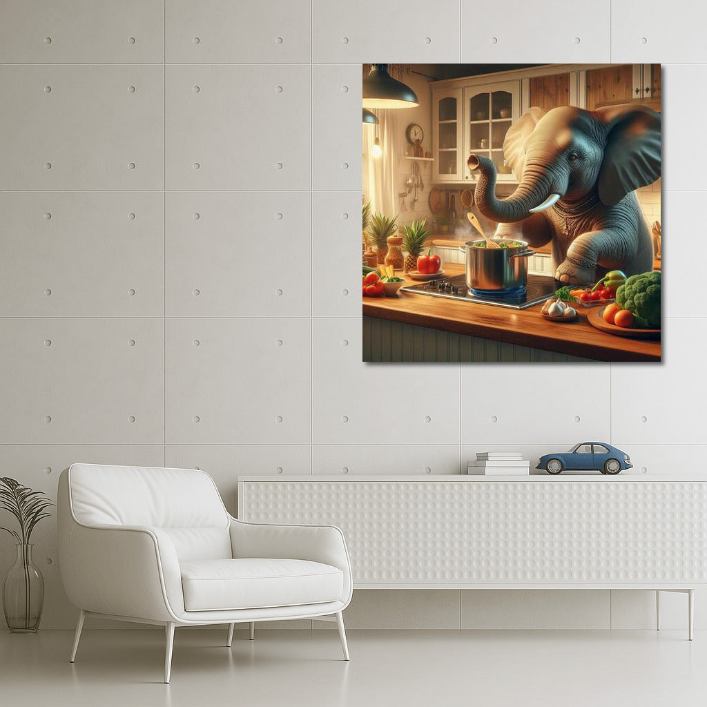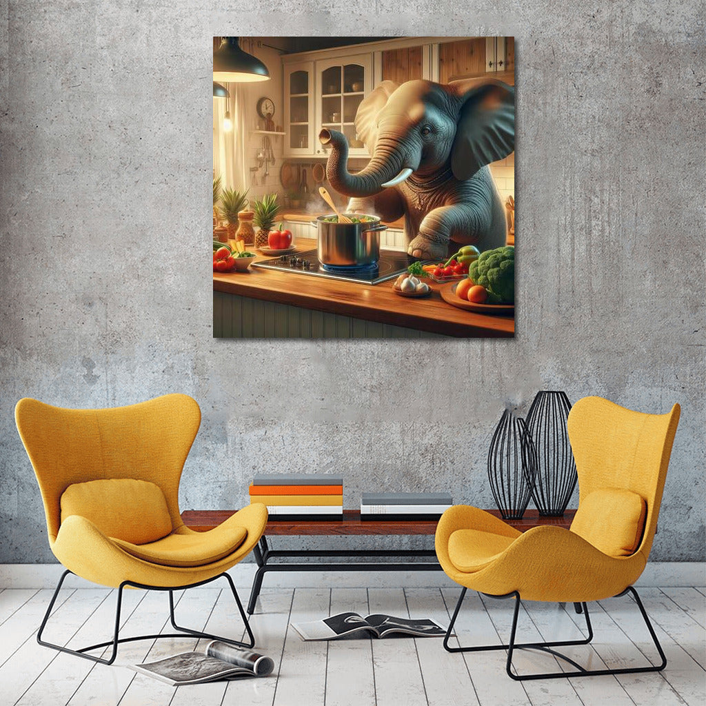Culinary Adventure: Elephant Cooks Dinner in the Kitchen Wall Art