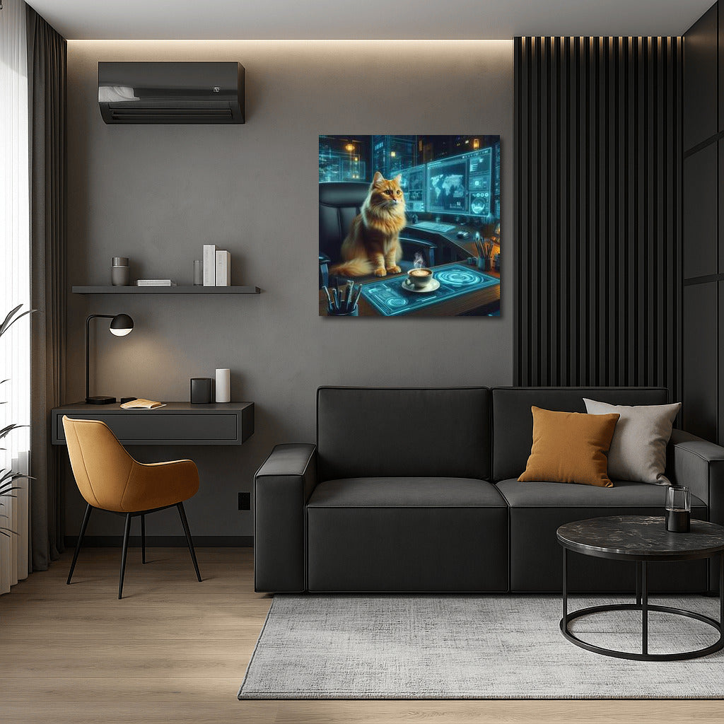 Cyber Cat in a Cafe: Futuristic World Wall Art