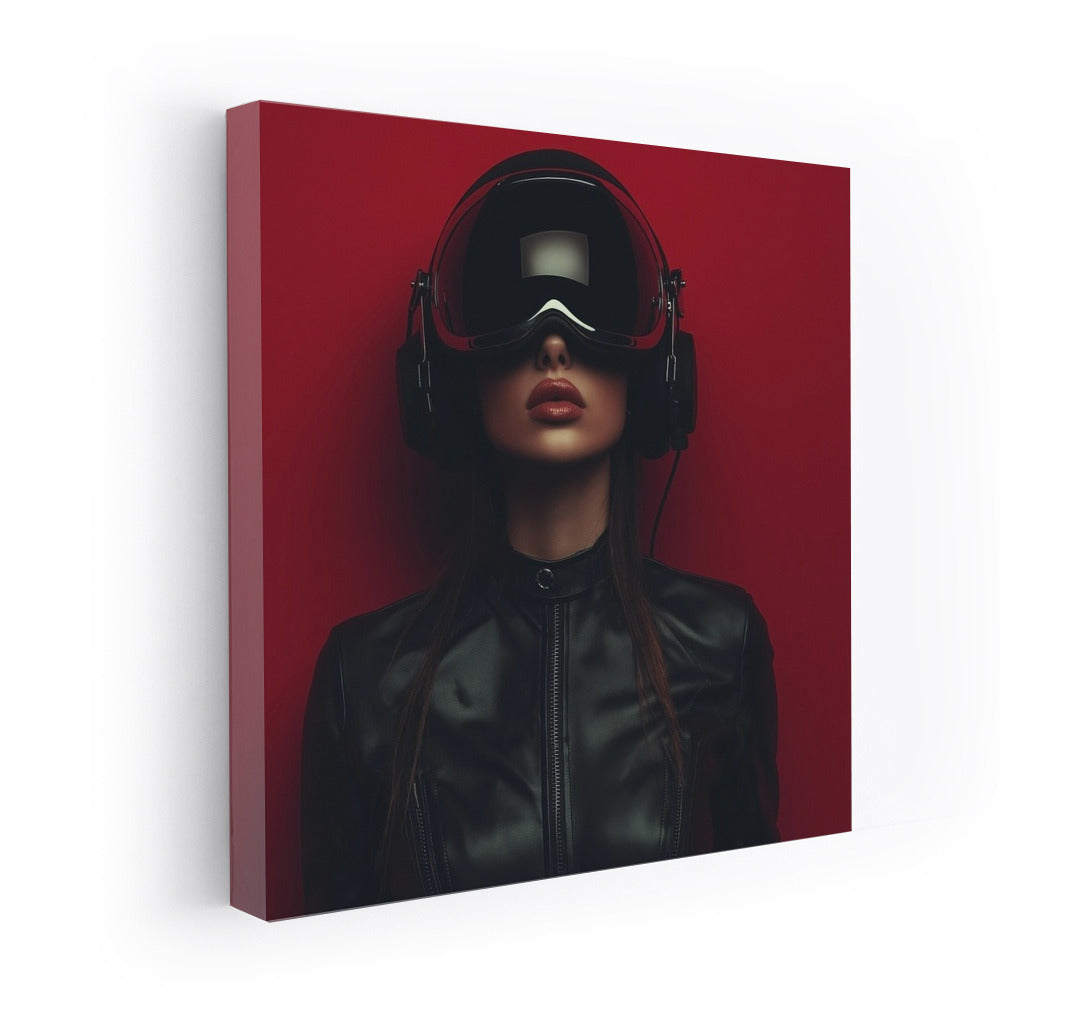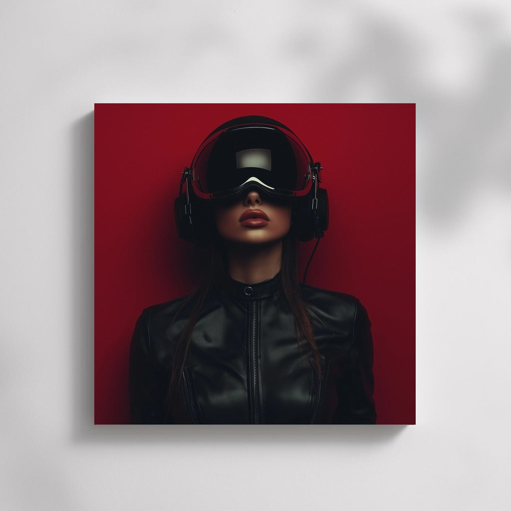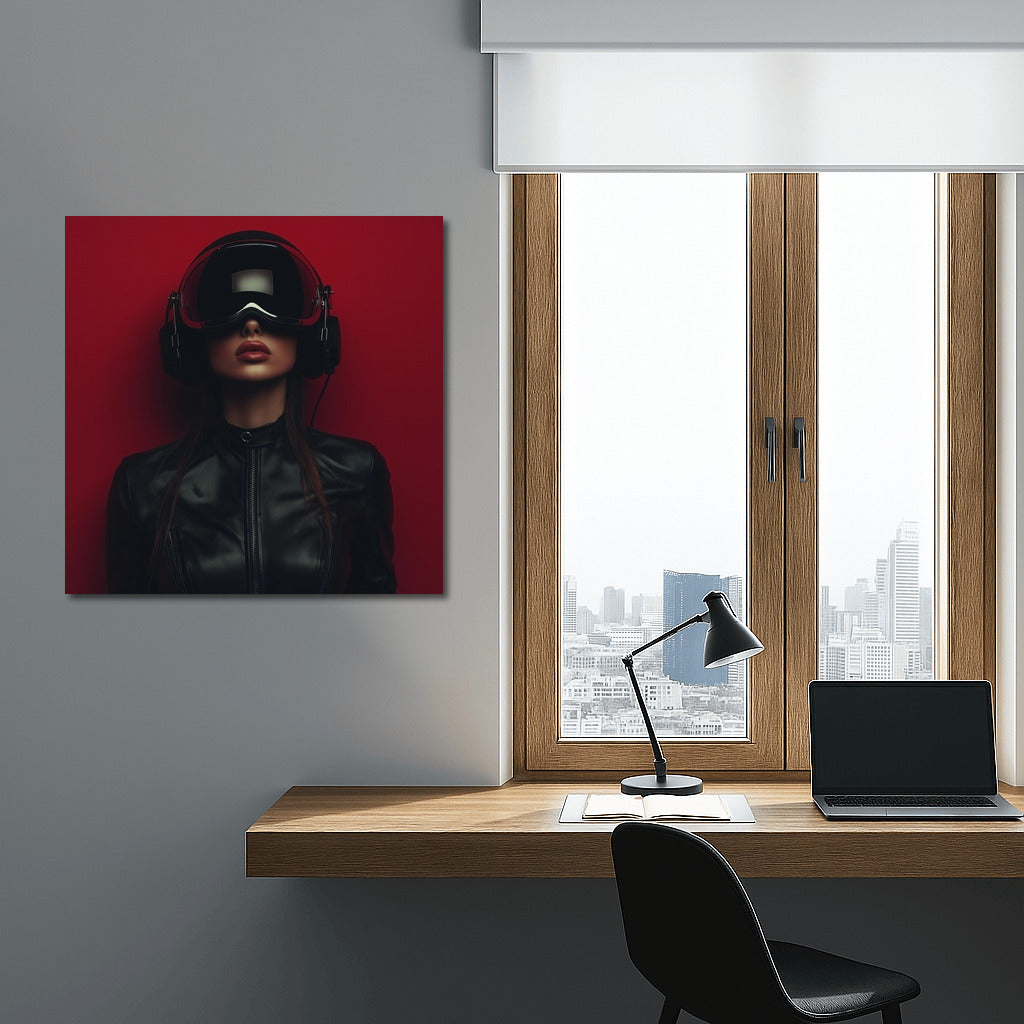 Virtual world of wall art: mysterious figure in a helmet on a bright background. Modern poster for a stylish interior. See more from the collection: Mixed Wall Art