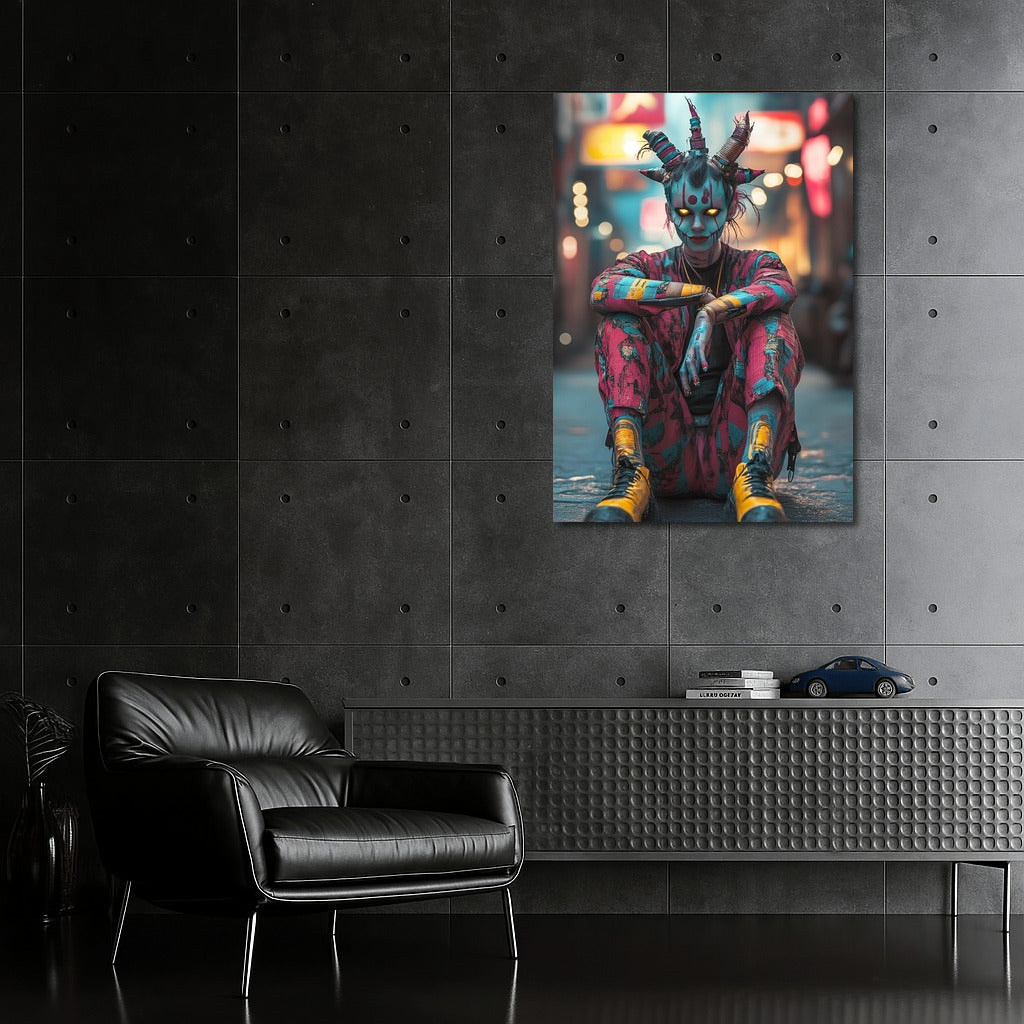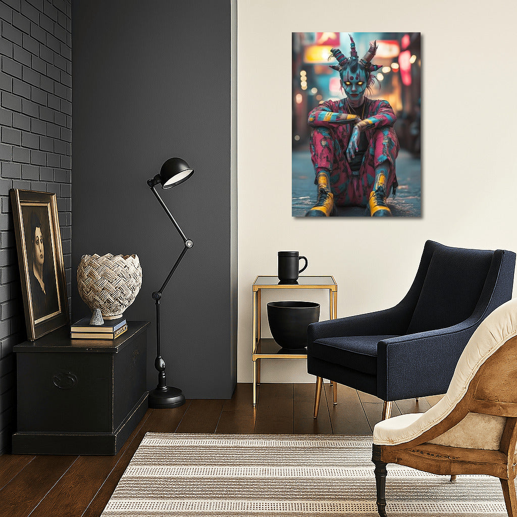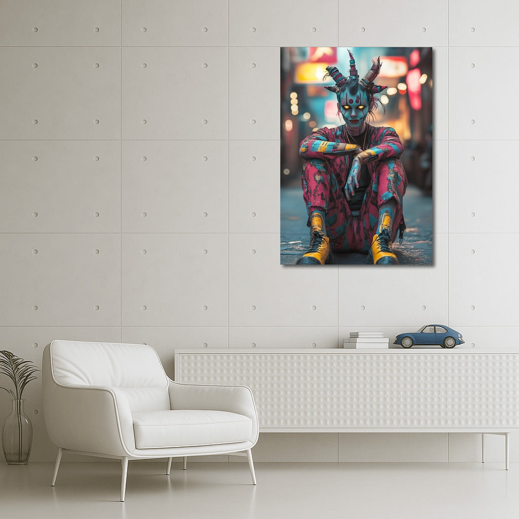 Dive into the world of cyber art with a poster where a fantasy character comes to life in the bright colors of the future city streets. See more from the collection: Mixed Wall Art