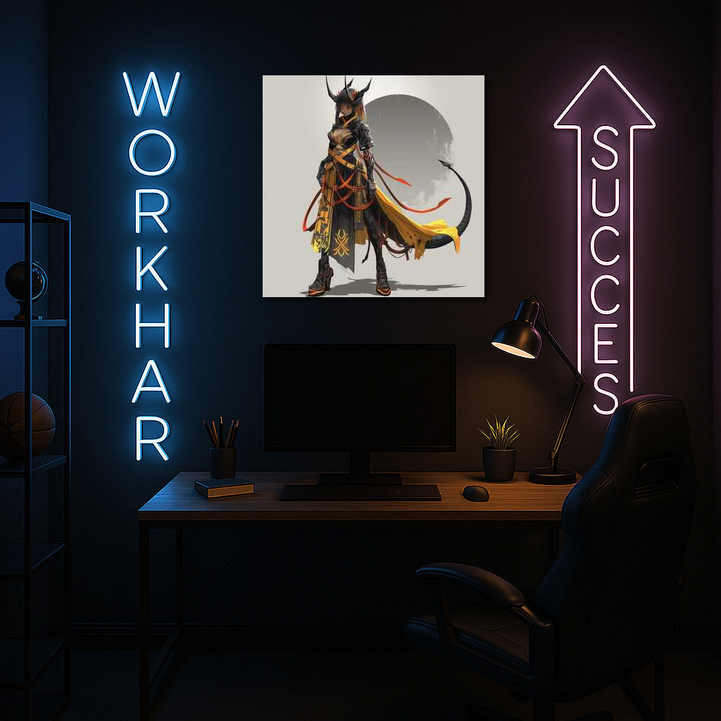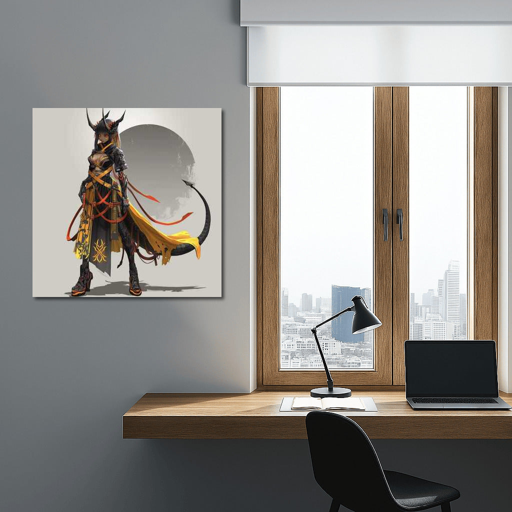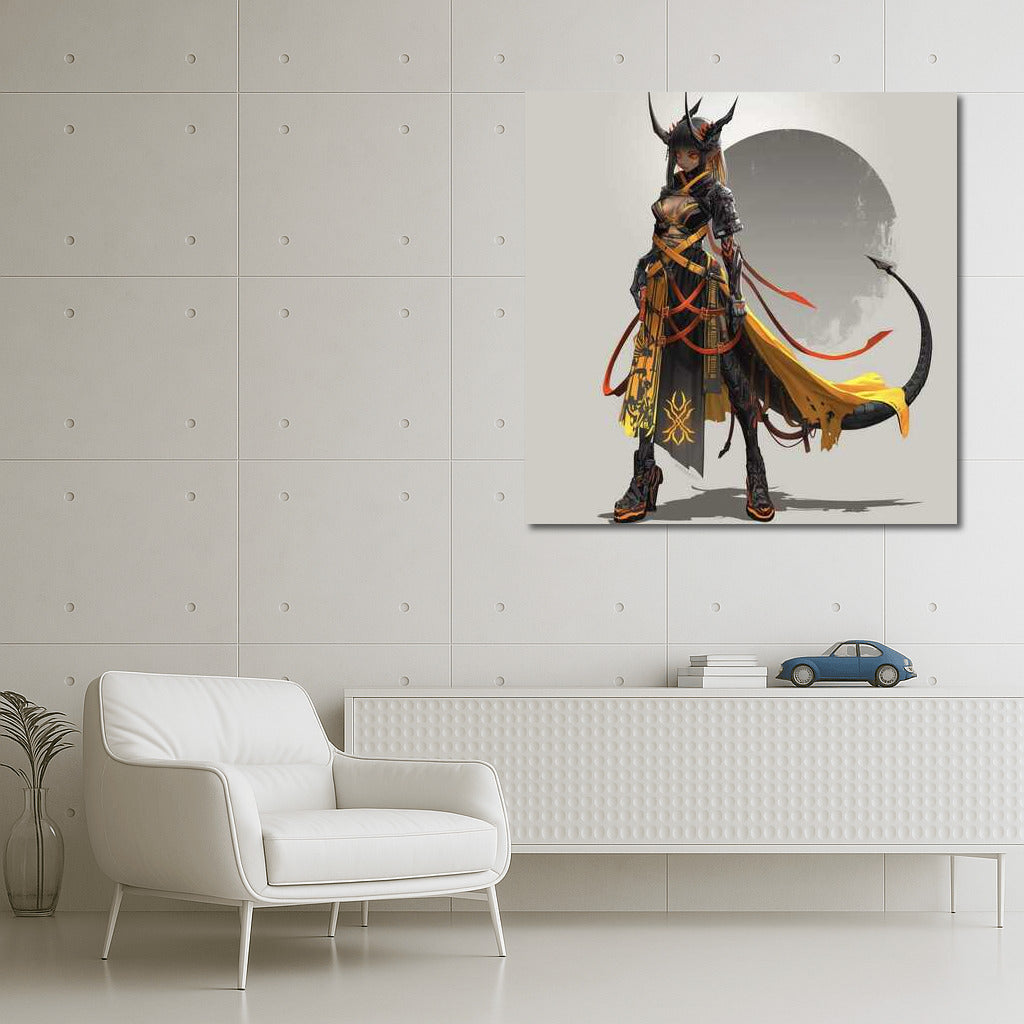 Dive into a fantasy world with this poster: a cyberpunk demon in elegant armor, bringing your walls to life with magic. See more from the collection: Fantasy Art