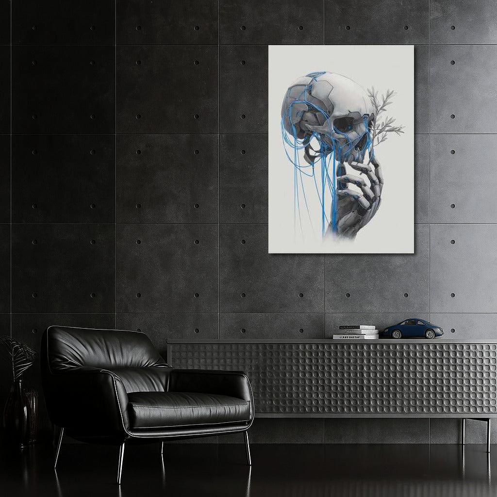 Futuristic Cyberpunk Skull Poster: Nature and technology merge in exquisite wall art. See more from the collection: Skull Art