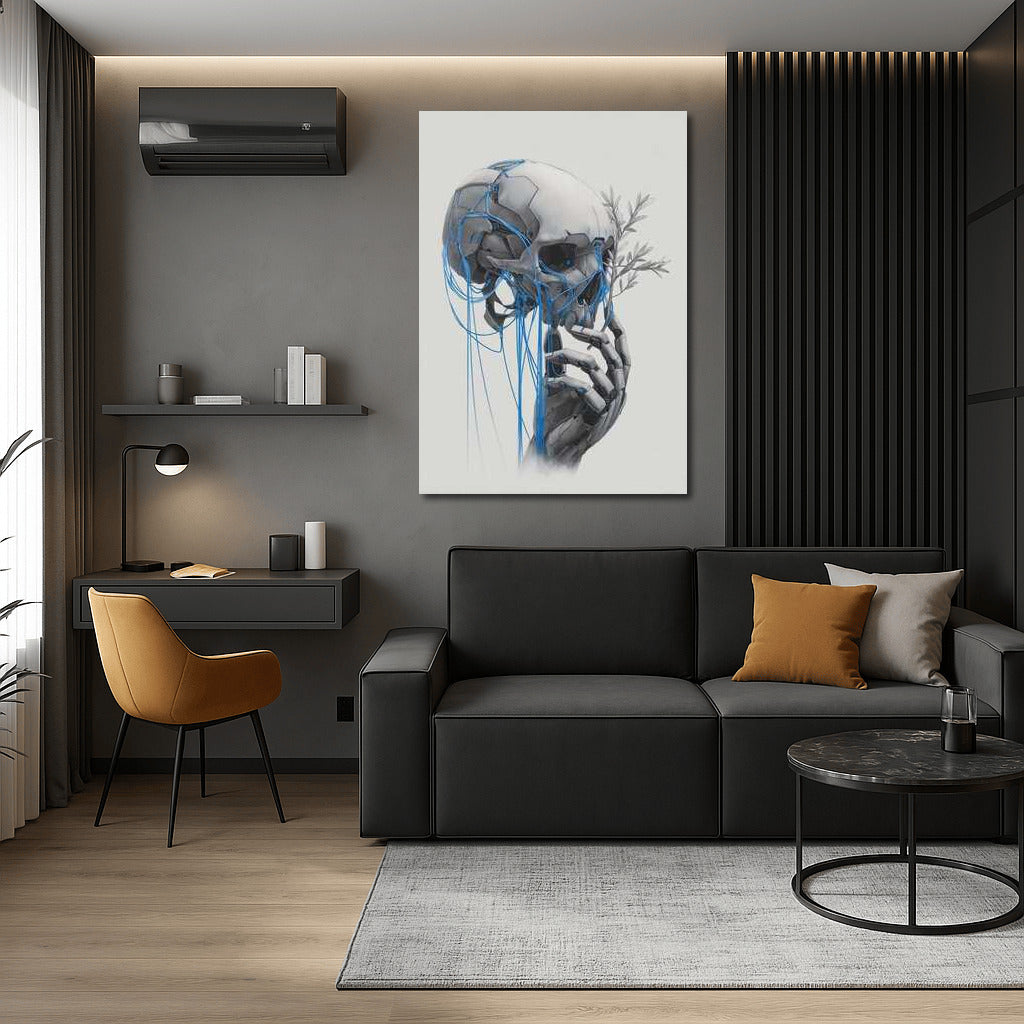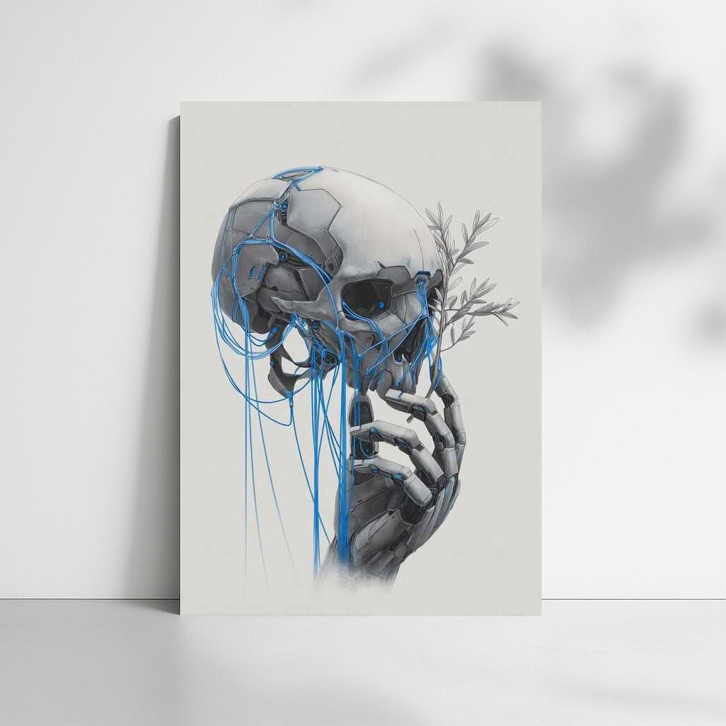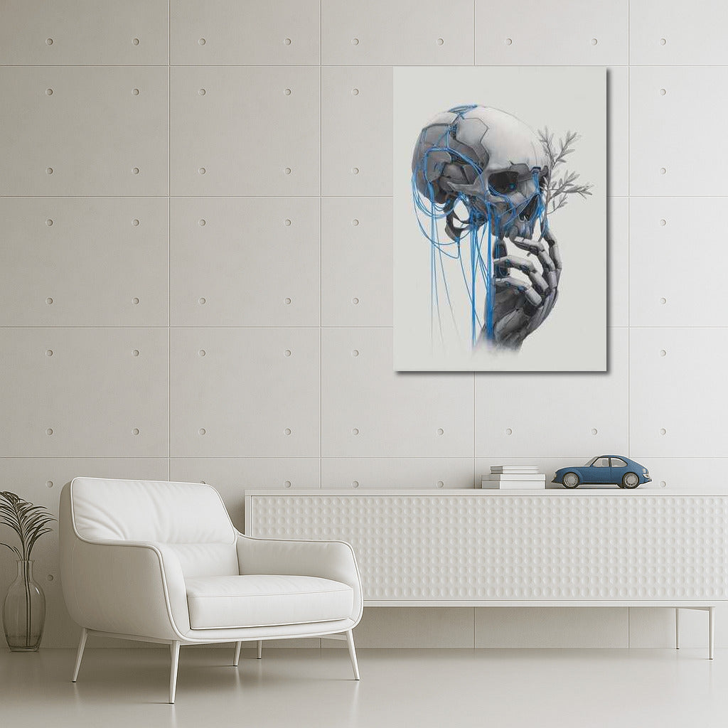 Cyberpunk Skull: The Fusion of Nature and Technology Wall Art