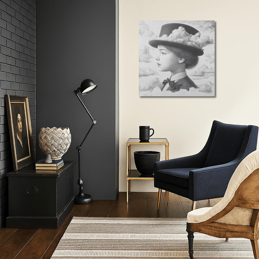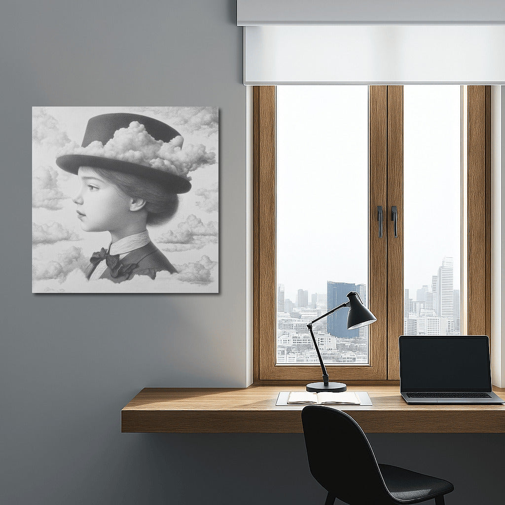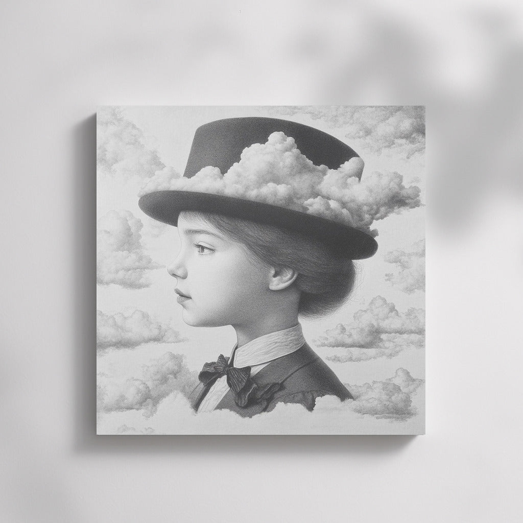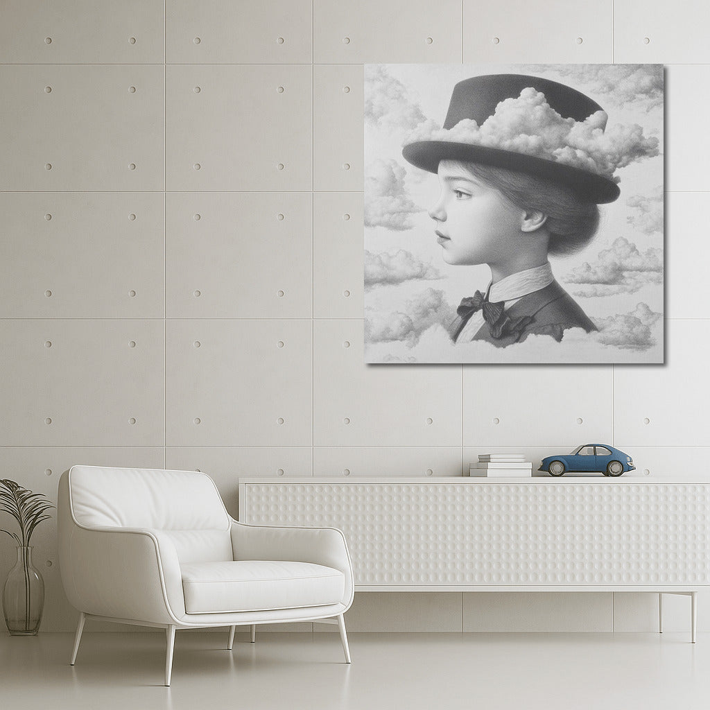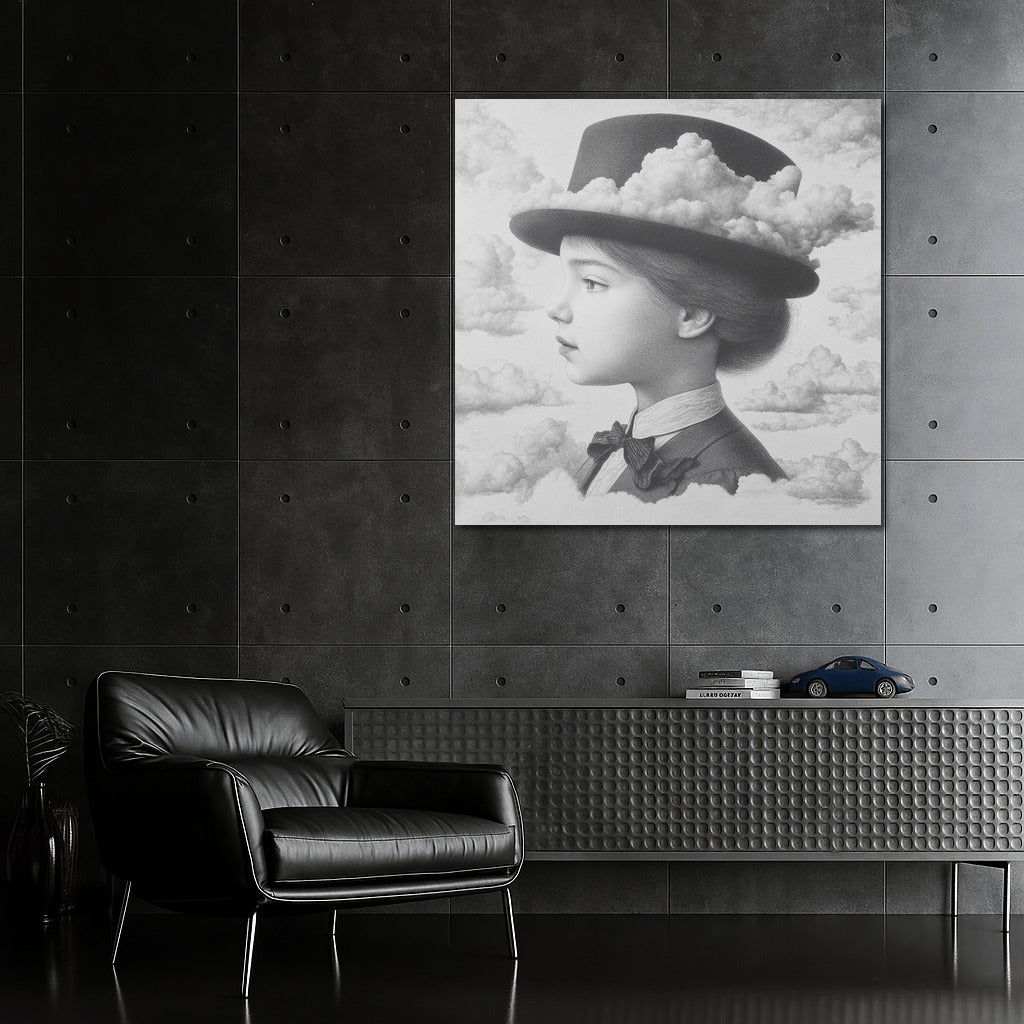 A gentle poster with a dreamy figure in the clouds and a top hat. Perfect wall art to add fantasy to your interior! See more from the collection: Black and White Art