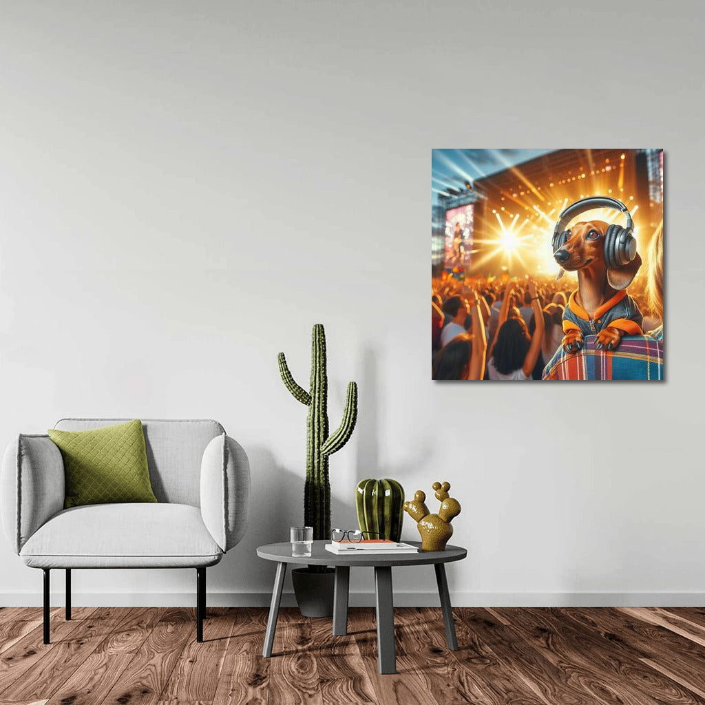 Dachshund in Headphones: Music Festival on the Wall Wall Art
