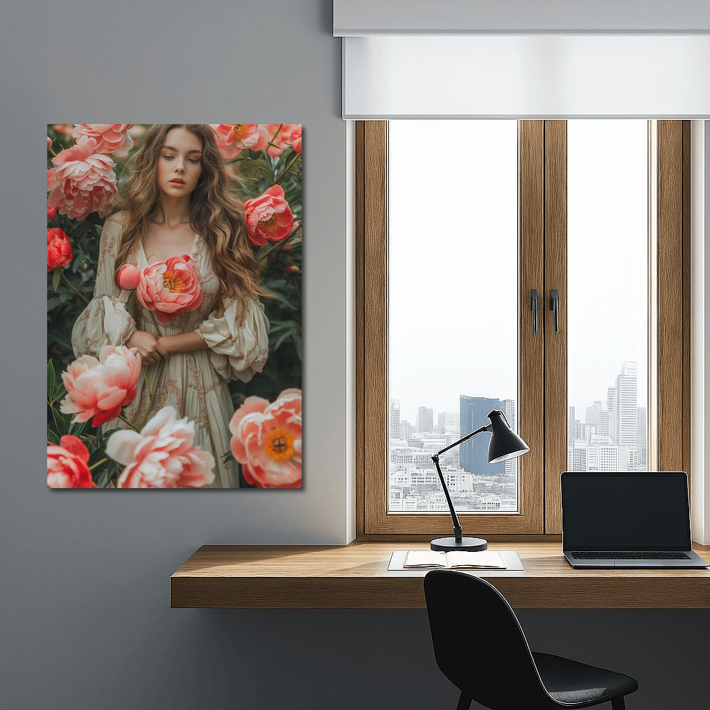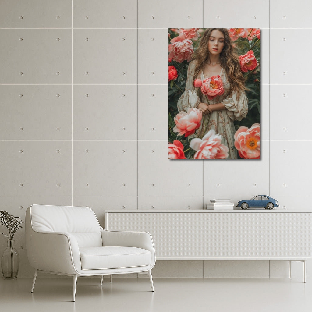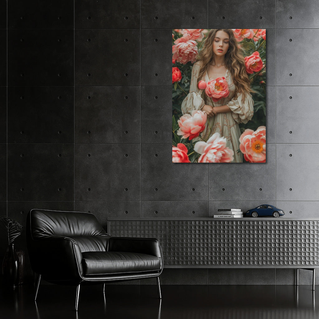 Add romance to your interior with this painting: a figure among lush peonies will enliven the walls and create an atmosphere of calm. See more from the collection: Wall Art with Women
