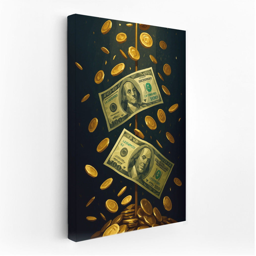 Gold and banknotes swirl in a dance of abundance. This painting will become a stylish accent of your wall art! See more from the collection: Money Art