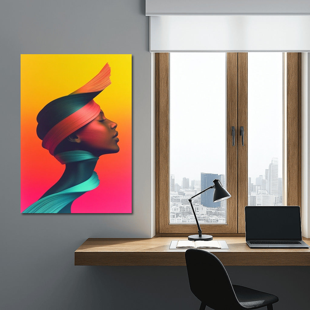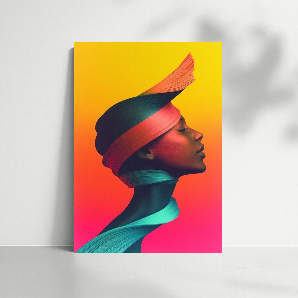Dive into a world of color: an abstract art poster with colorful ribbons hugging the silhouette. The perfect wall decoration! See more from the collection: Mixed Wall Art