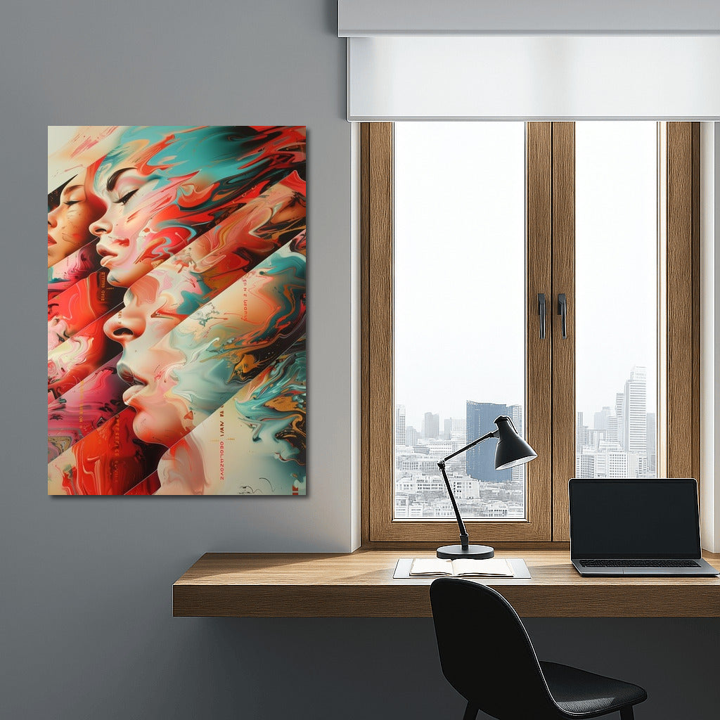 Abstract painting with bright streams of color and female silhouettes. Dynamics and tenderness in every stroke. Wall art. See more from the collection: Mixed Wall Art