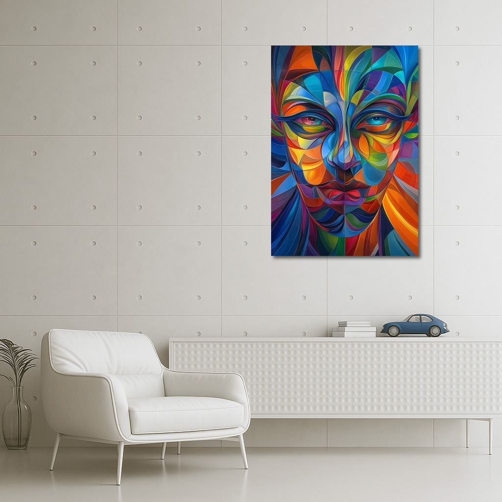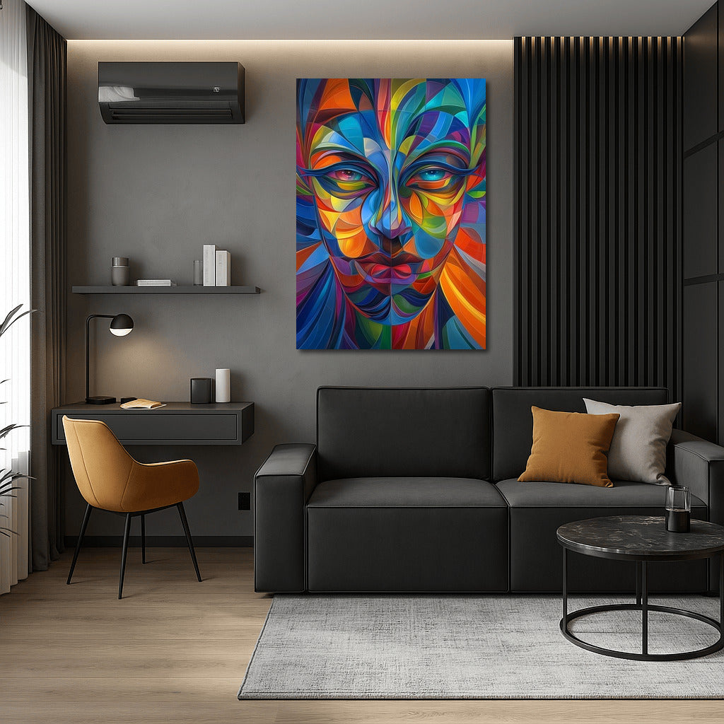 Abstract painting with play of colored shapes creating a mysterious look. Vivid poster for your wall art. See more from the collection: Mixed Wall Art
