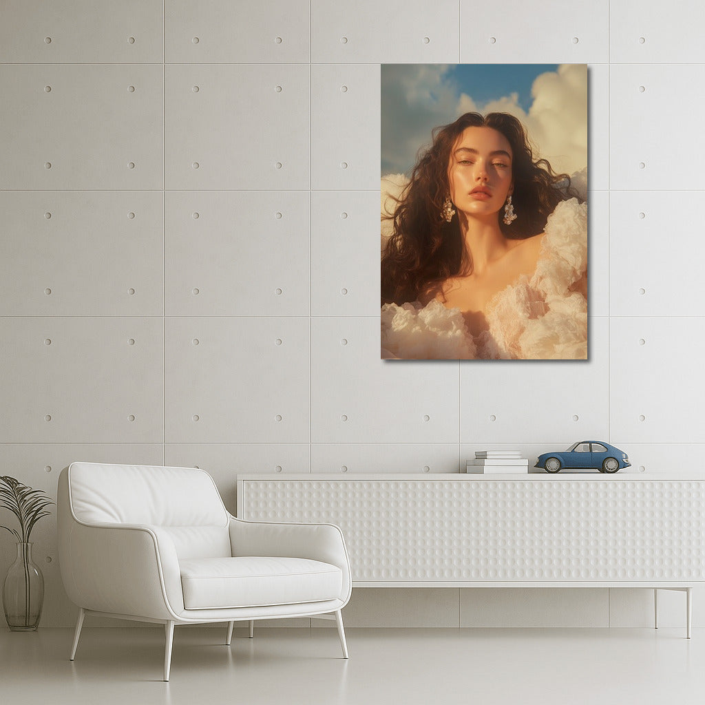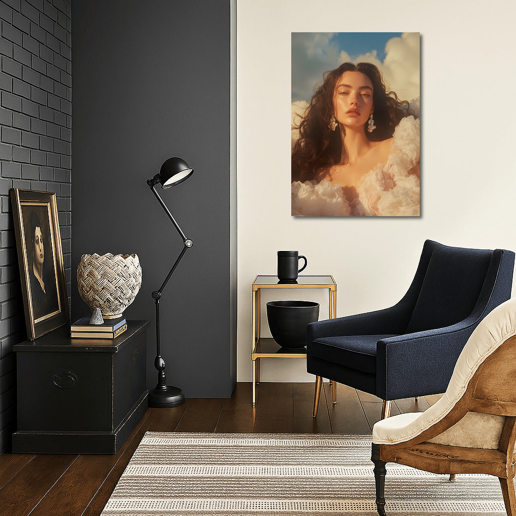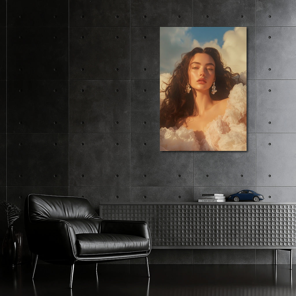 An elegant painting with airy clouds and a mysterious image. Transform your interior with this unique wall art! See more from the collection: Wall Art with Women