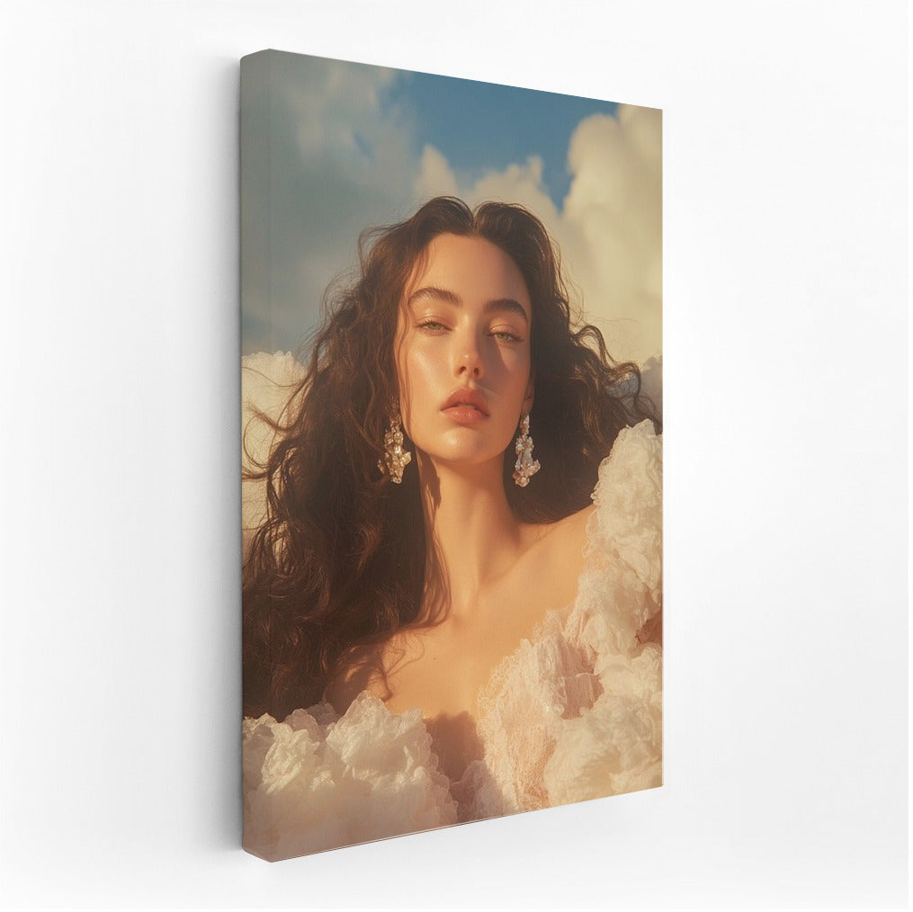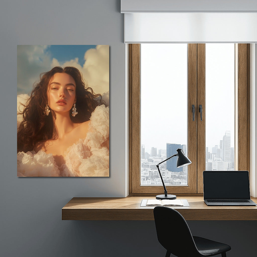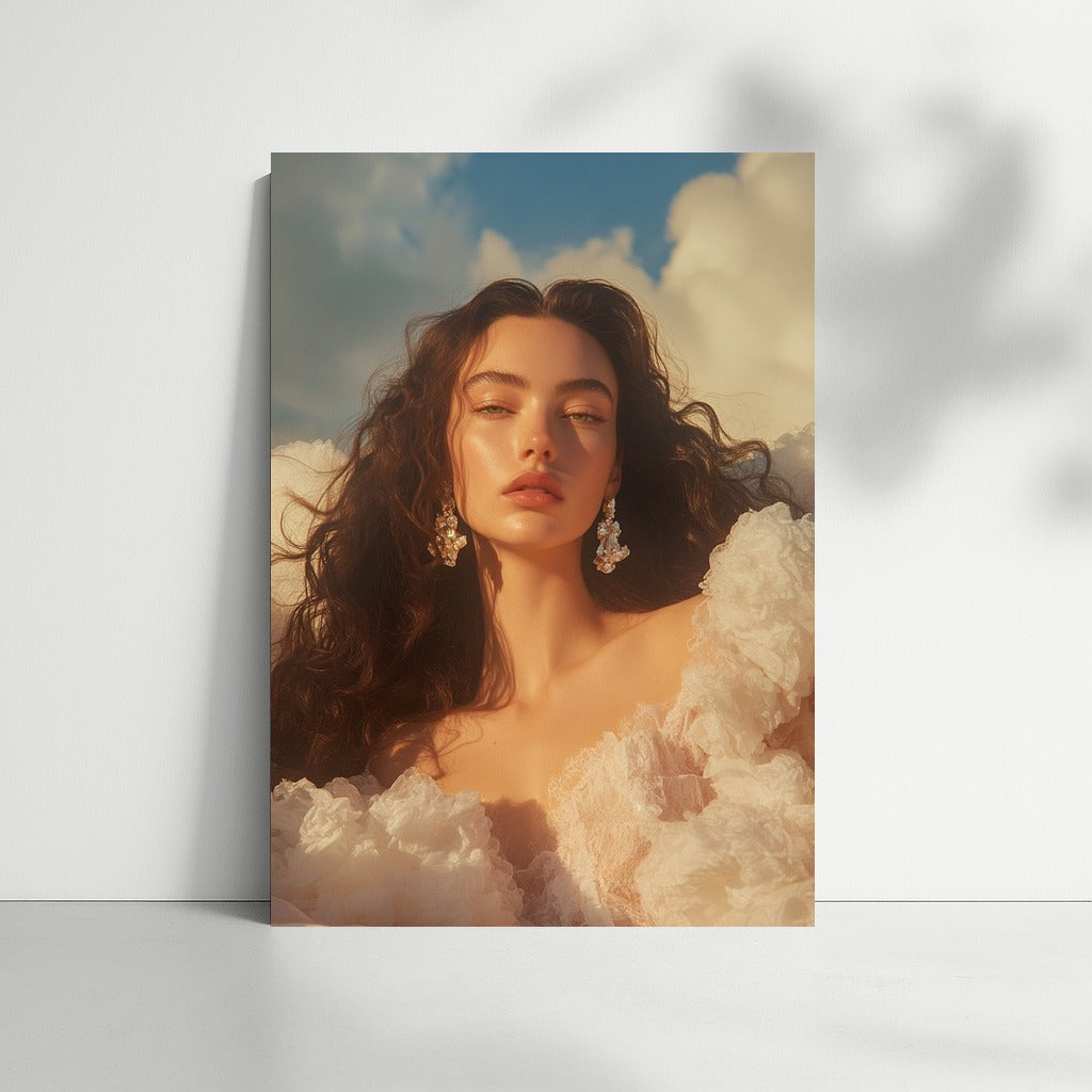 An elegant painting with airy clouds and a mysterious image. Transform your interior with this unique wall art! See more from the collection: Wall Art with Women