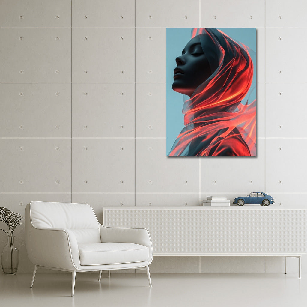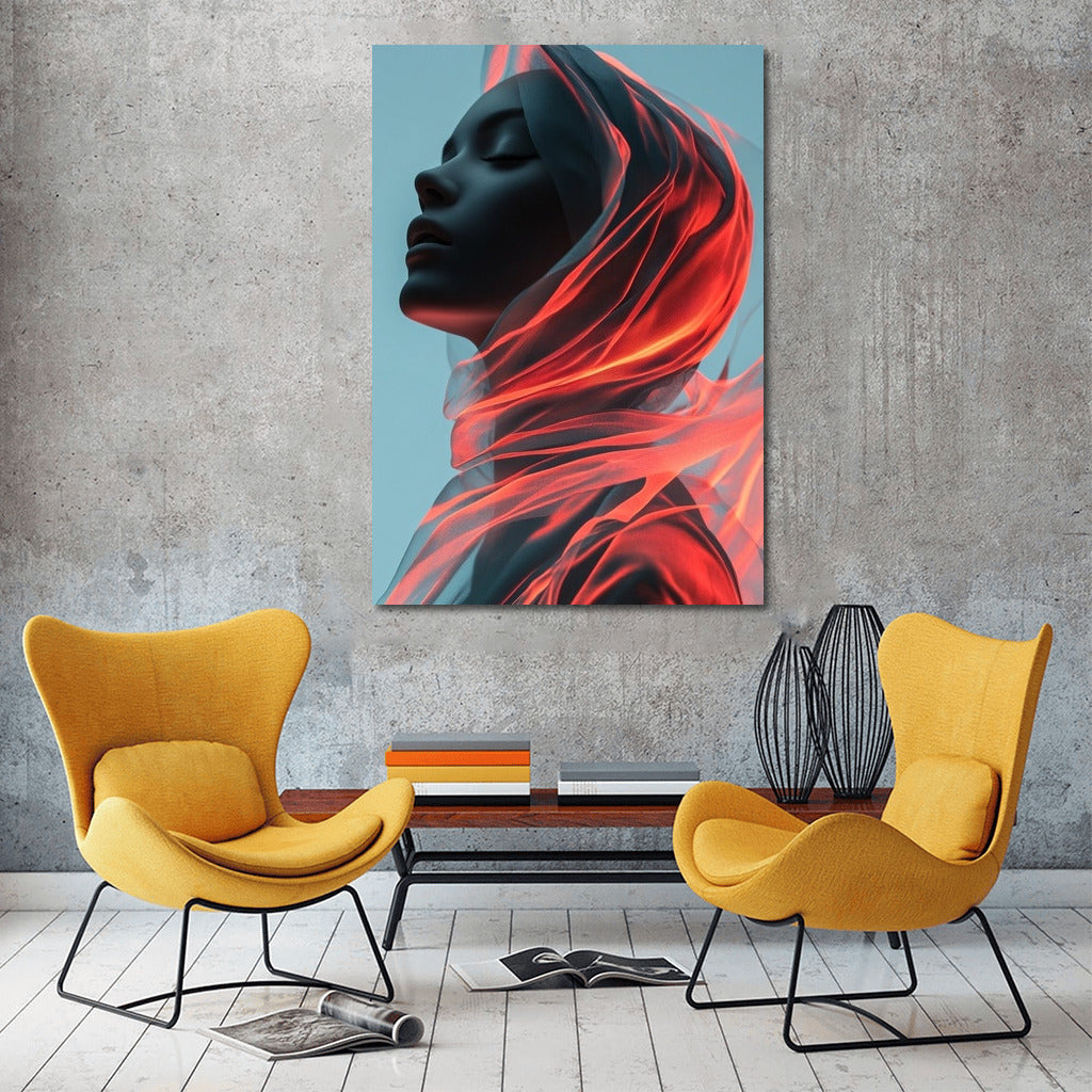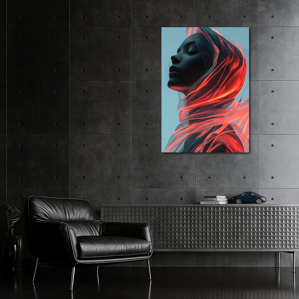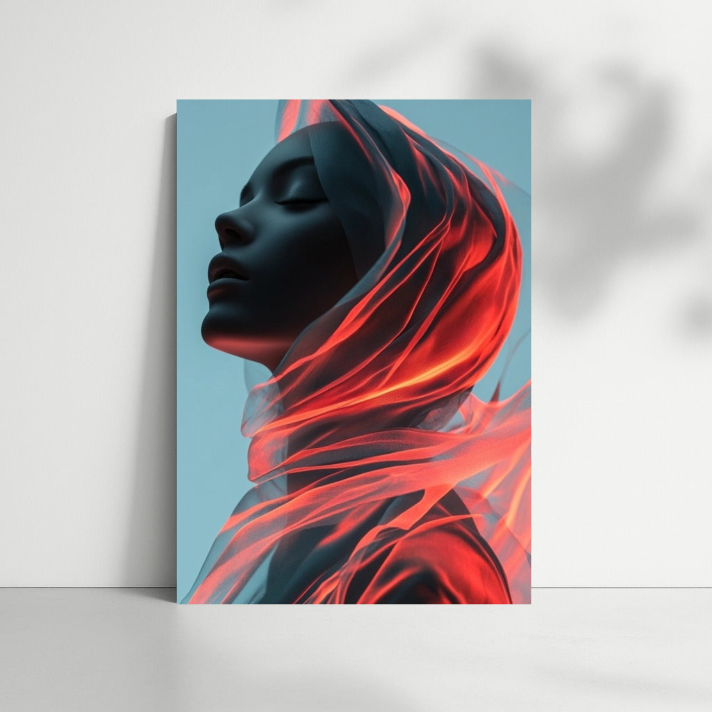 Elegant play of light and shadow: a poster with a mysterious figure in a shining cloud. Modern wall art for a stylish interior. See more from the collection: Mixed Wall Art