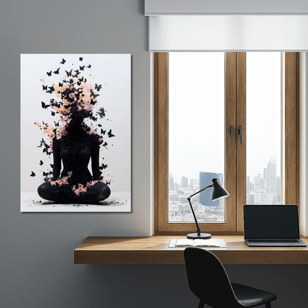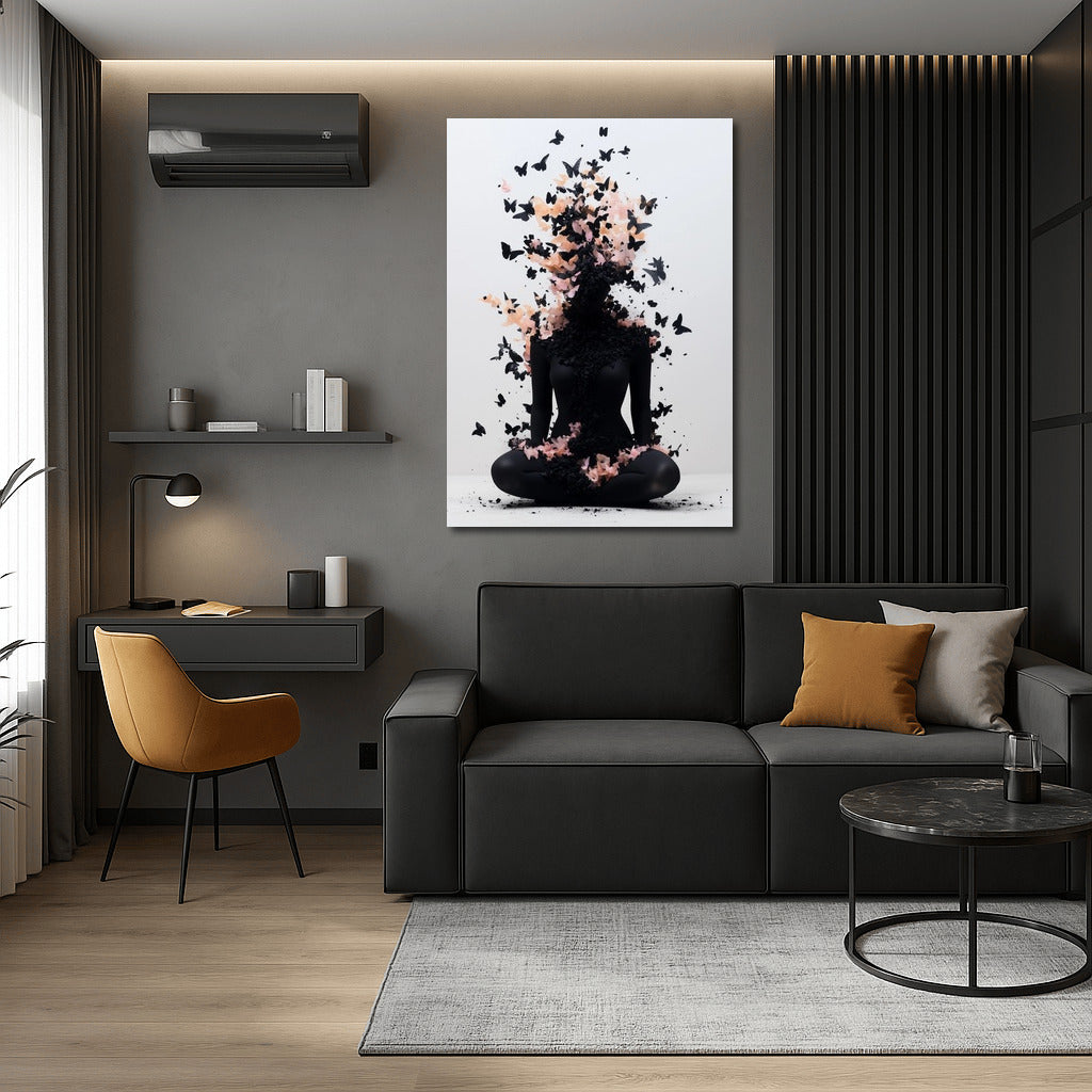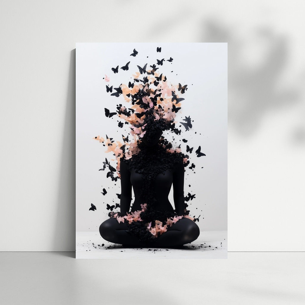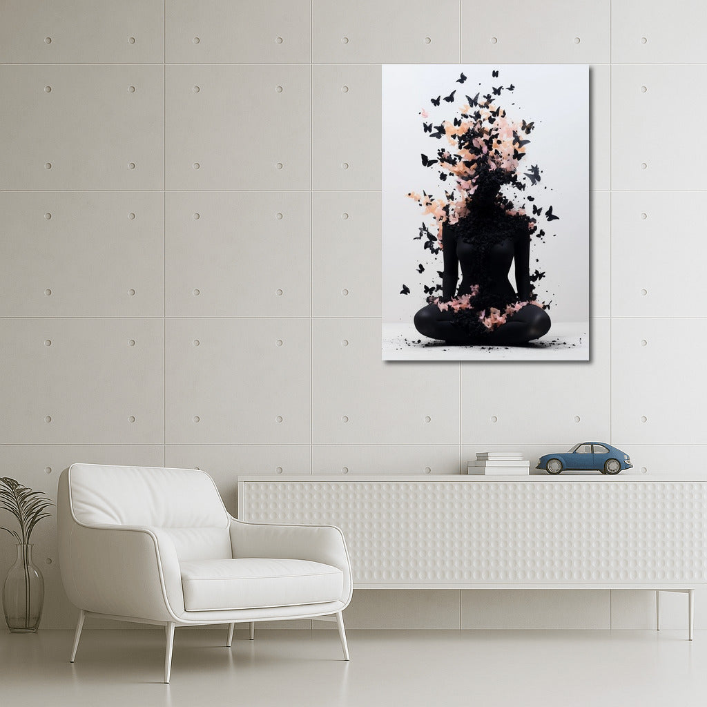 Silhouette in a cloud of butterflies is a poster where grace and metamorphosis merge into a unique wall art. ✨ See more from the collection: Mixed Wall Art