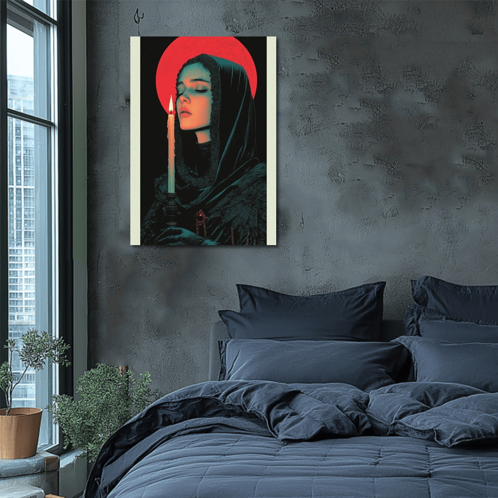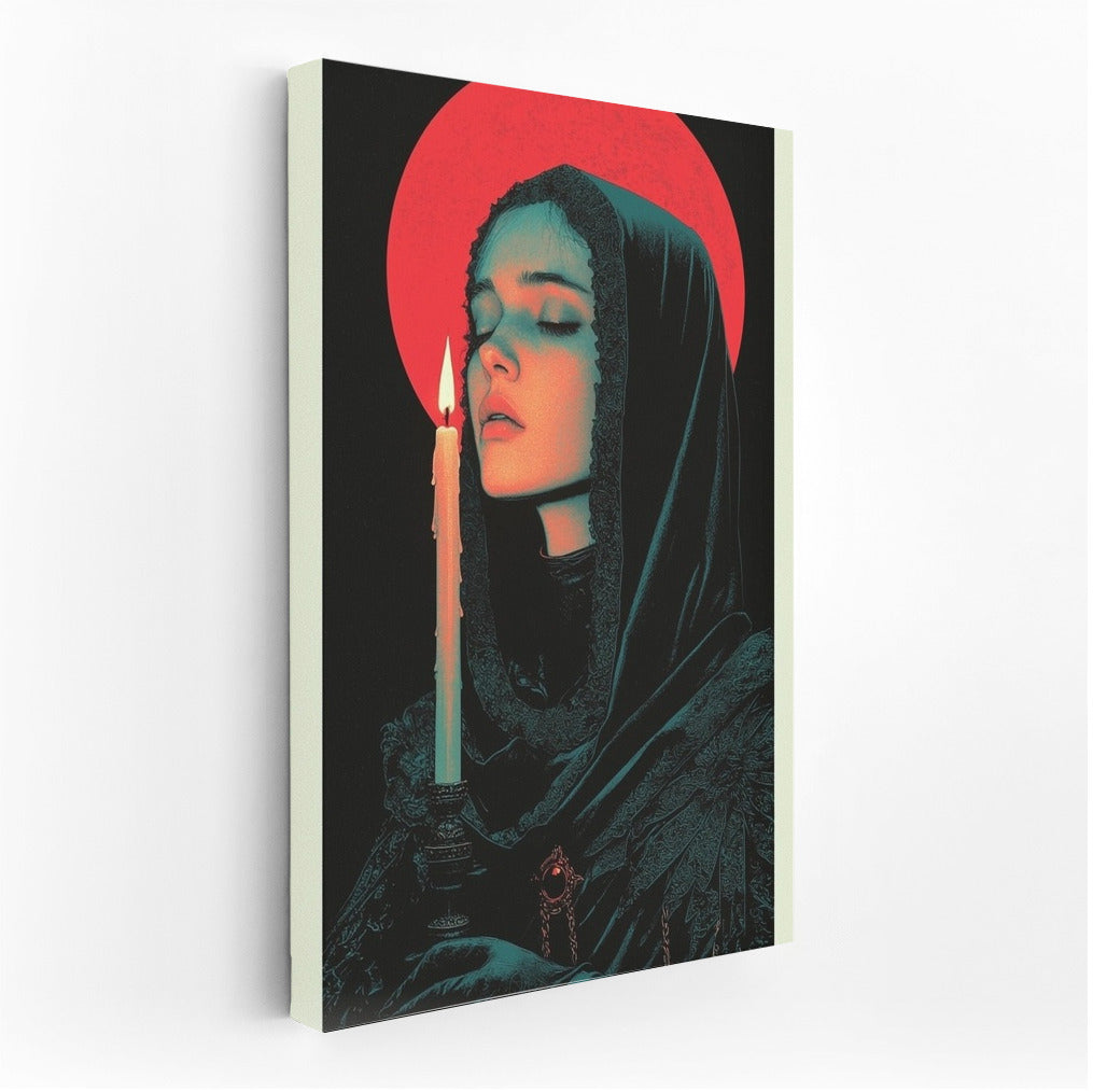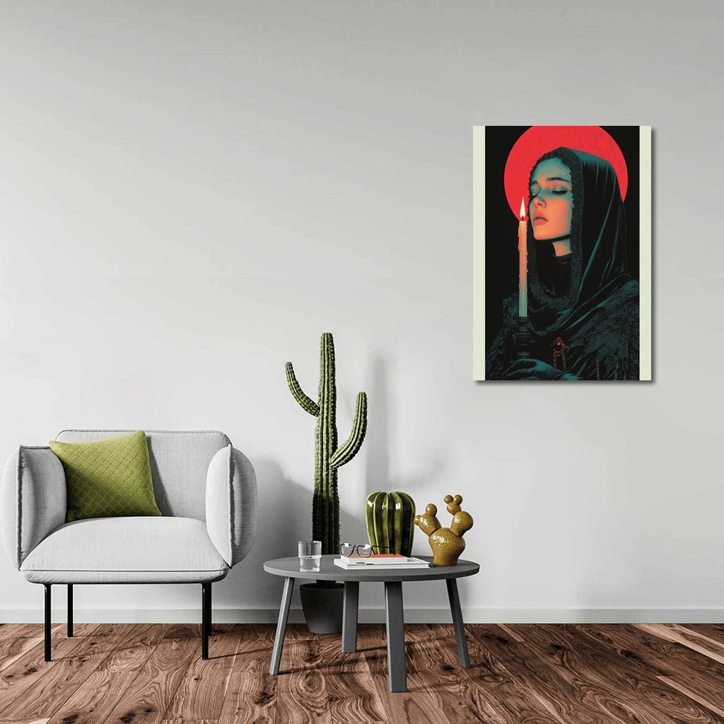 A mysterious painting with an attractive figure and a candle. A poster that reads thoughts and enlivens the walls with a mysterious light. See more from the collection: Mysticism Art