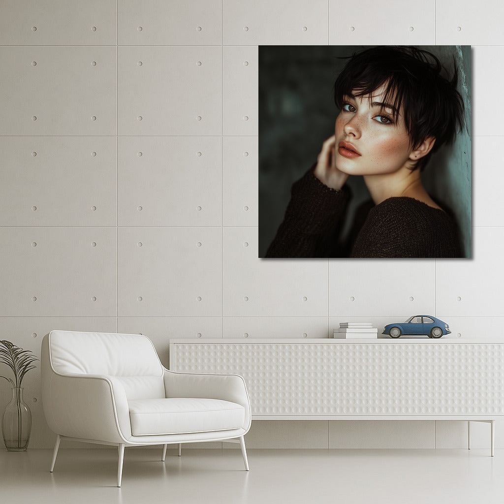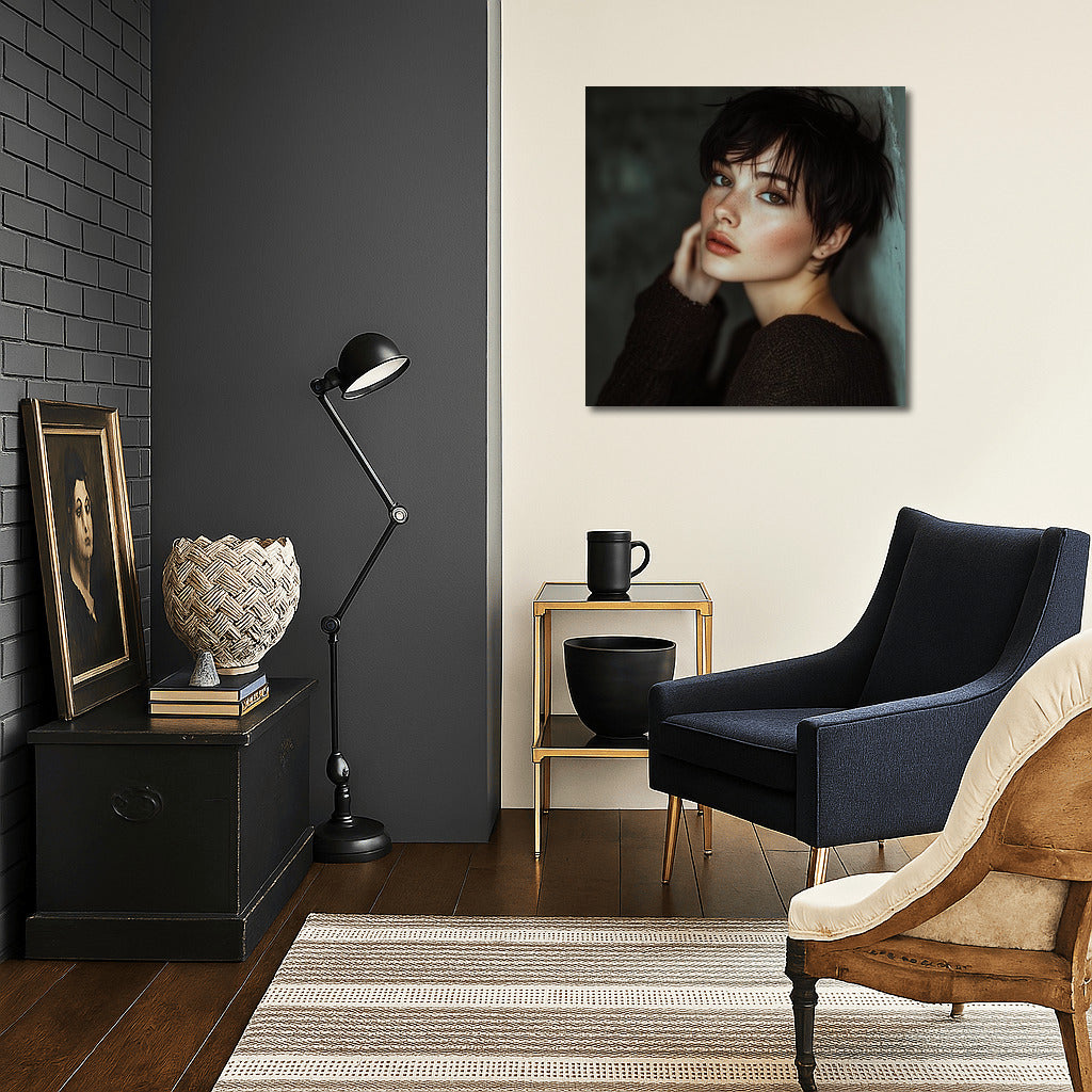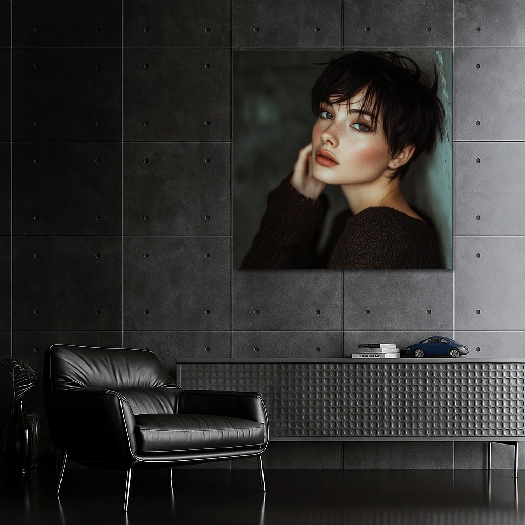 An elegant painting with a mysterious image in dark tones. This poster will add an atmosphere of mystery to your interior. See more from the collection: Wall Art with Women