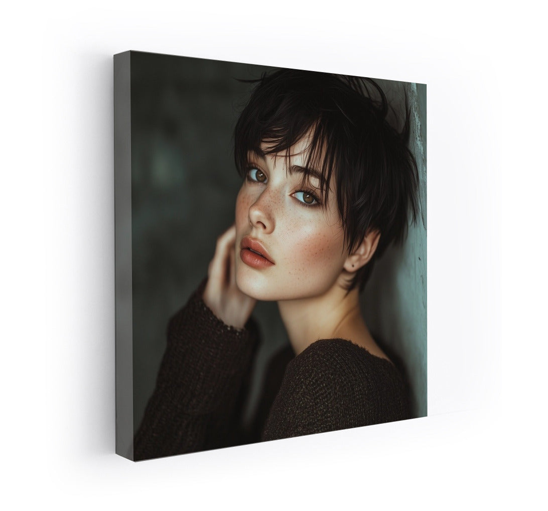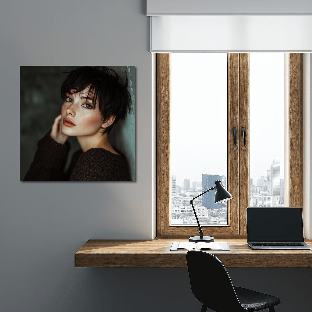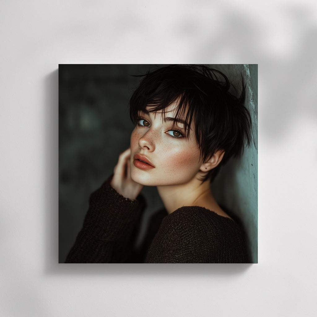 An elegant painting with a mysterious image in dark tones. This poster will add an atmosphere of mystery to your interior. See more from the collection: Wall Art with Women