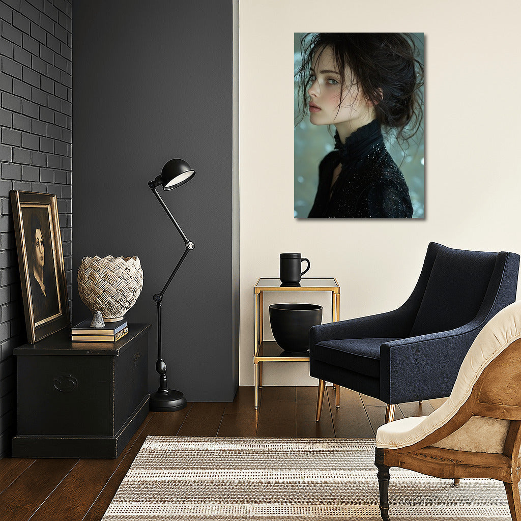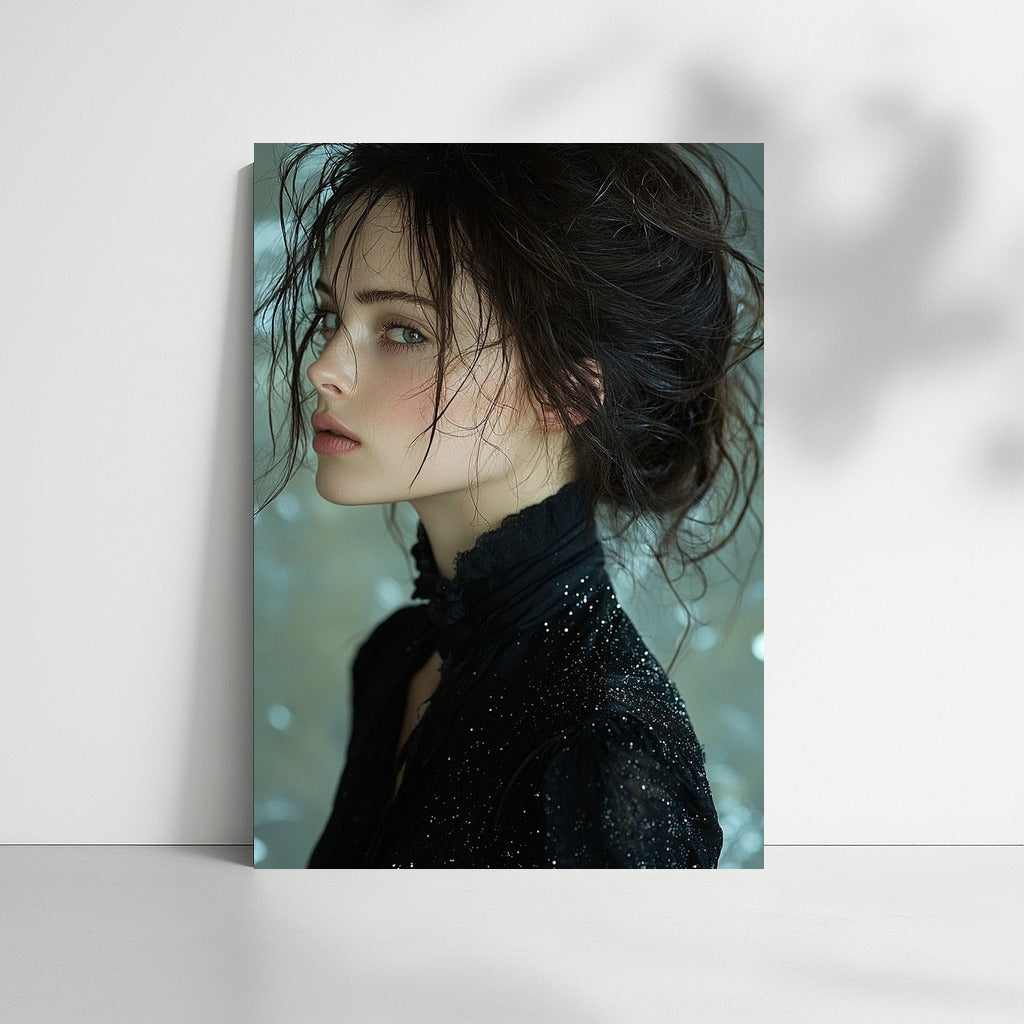 Immerse yourself in the dreamy atmosphere of a mysterious poster where fantasy comes to life in the form of a mysterious figure. Wall art. See more from the collection: Wall Art with Women