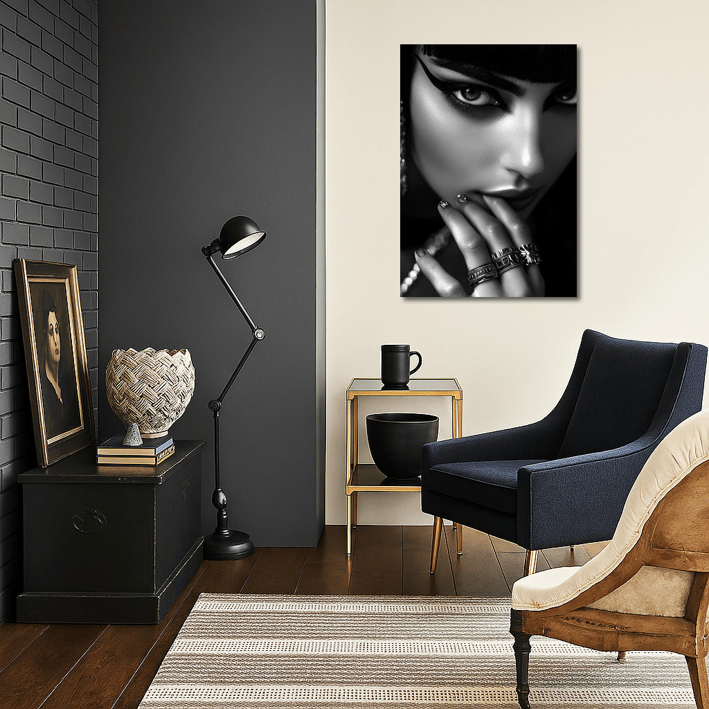 Dark Charm on Poster: Hypnotic play of shadows and light in exquisite wall art. See more from the collection: Wall Art with Women