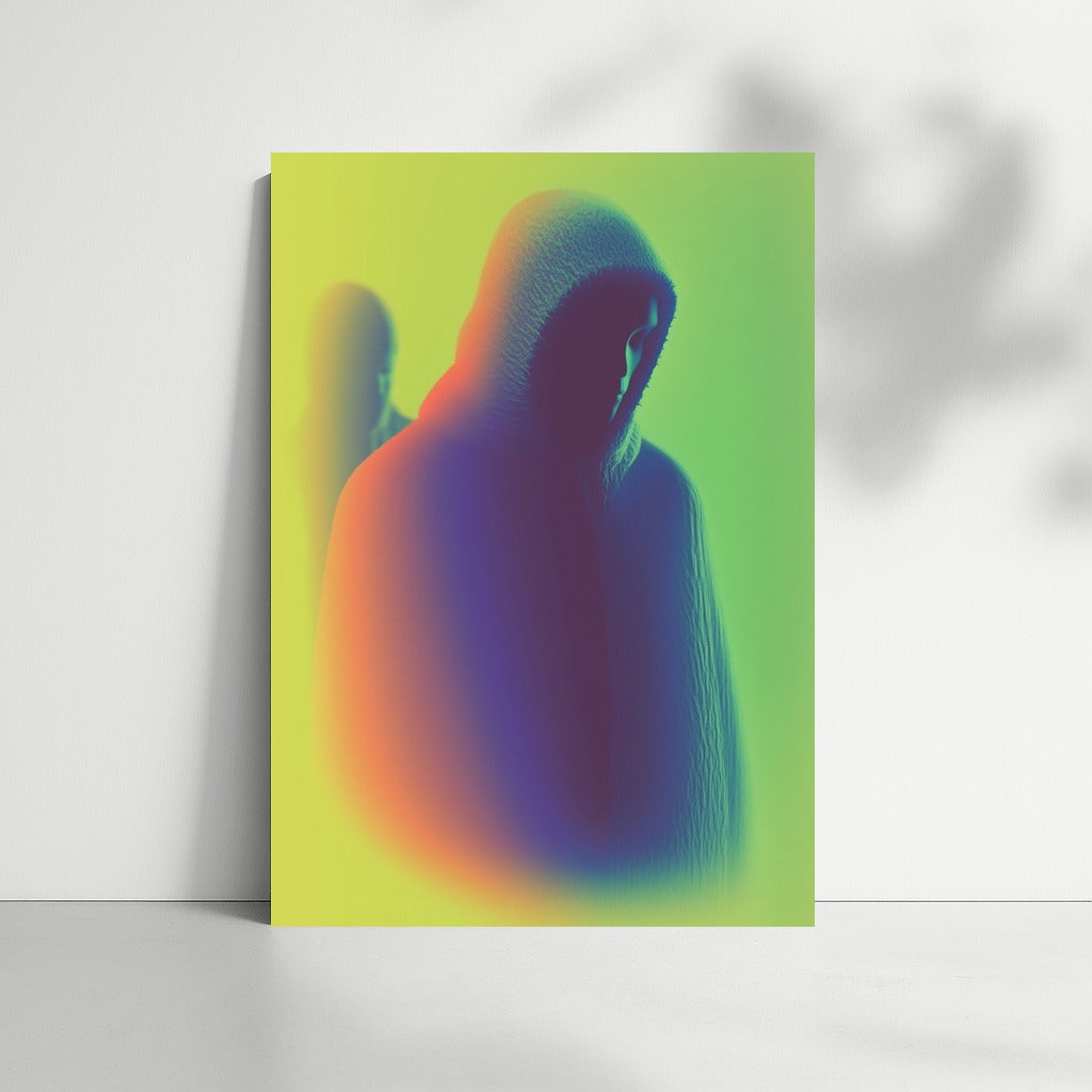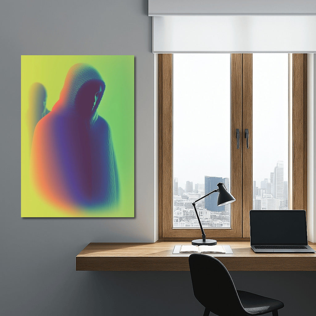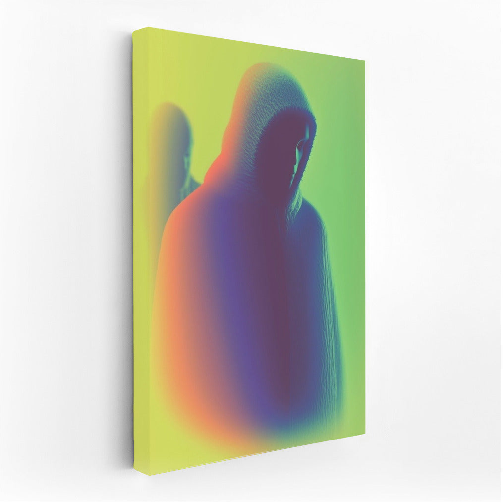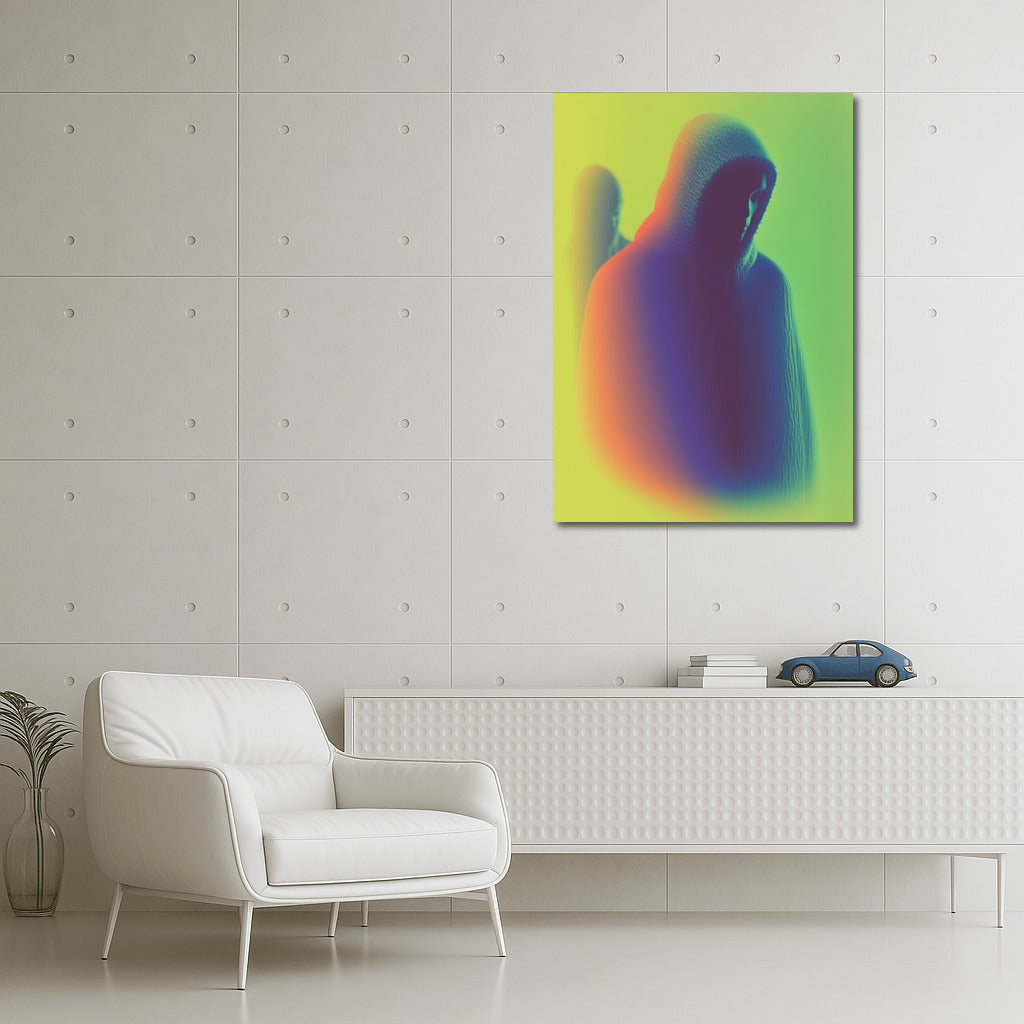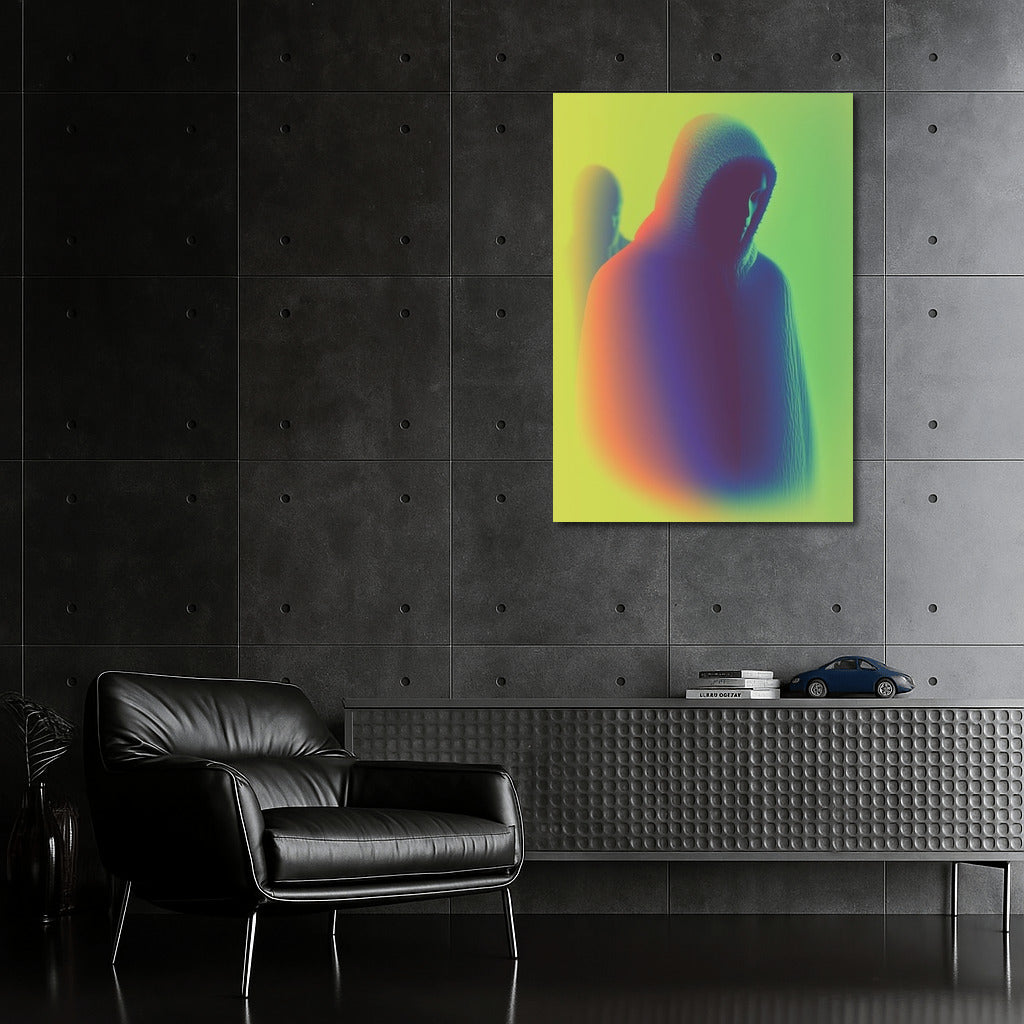 The mysterious silhouette in bright colors in the painting awakens fantasies. Wall art where mystery intertwines with color. See more from the collection: Mixed Wall Art