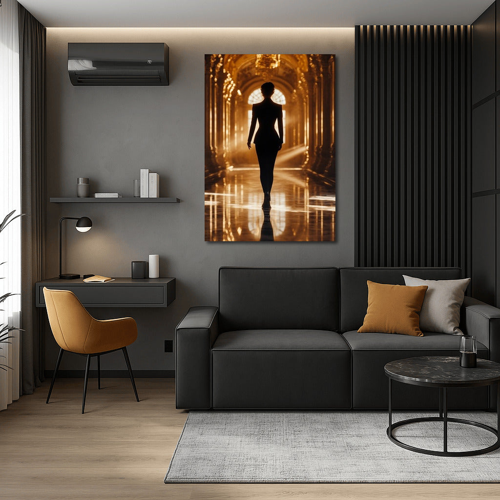 Silhouette in the golden hall is the embodiment of sophistication and mystery. An elegant poster for a stylish interior. Wall art in every stroke. See more from the collection: Mixed Wall Art