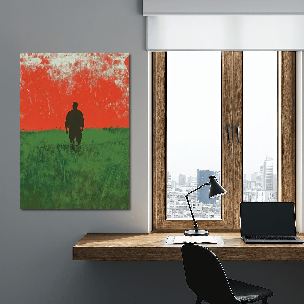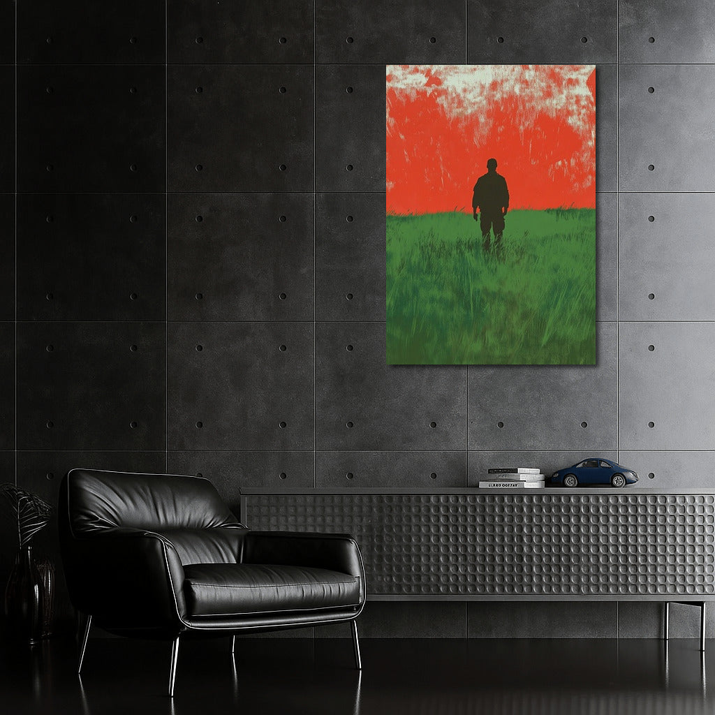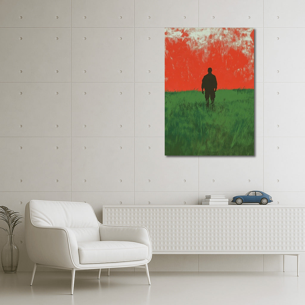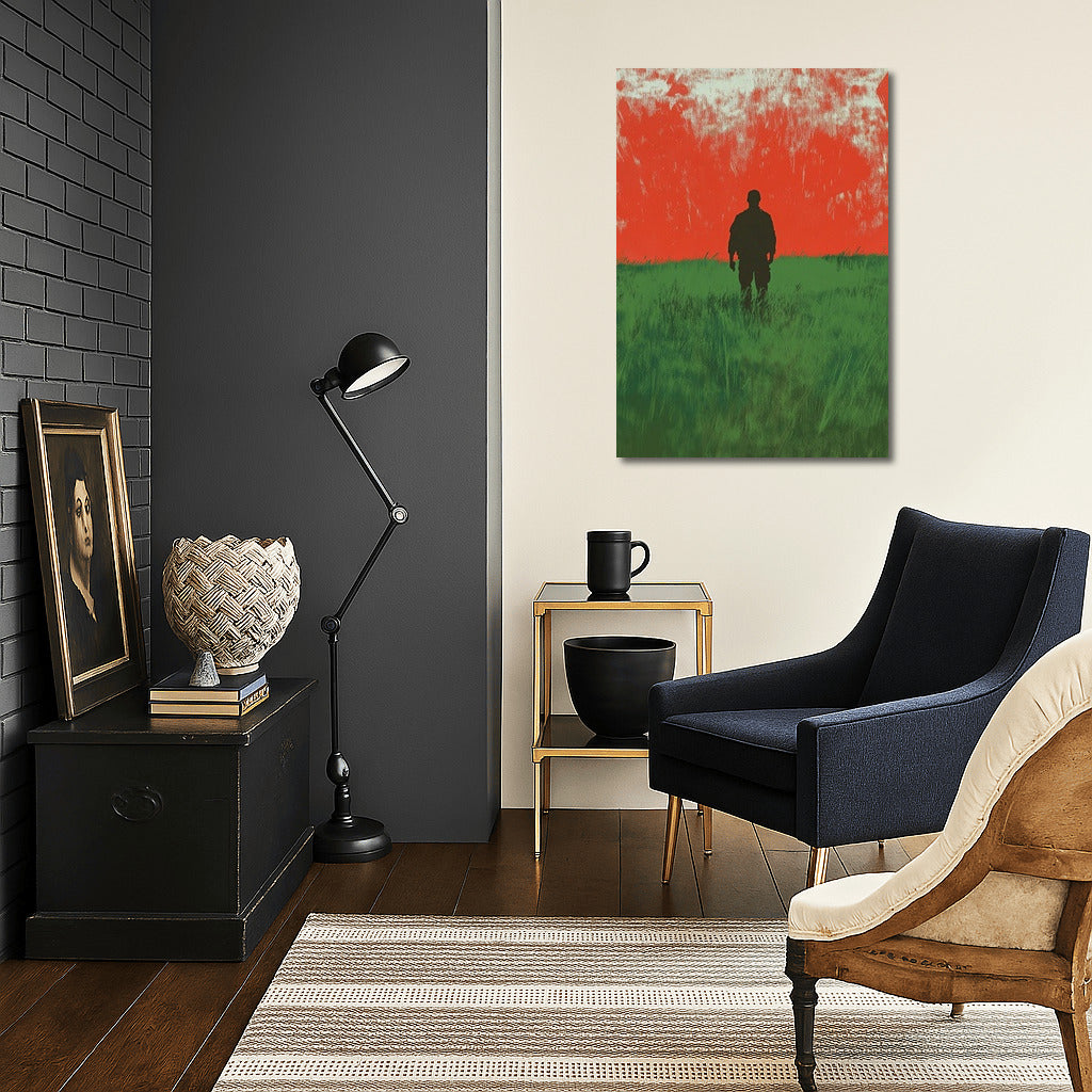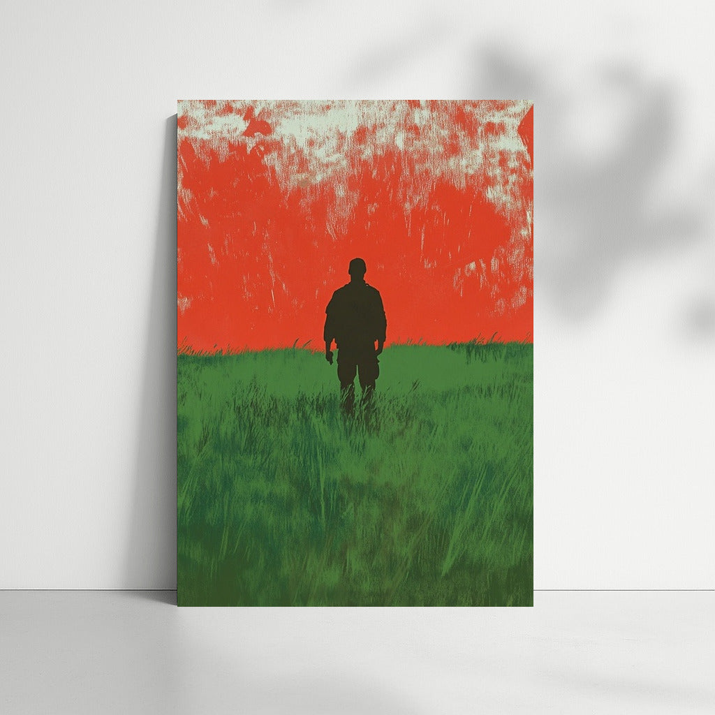 Silhouette against a fiery sunset: a poster where nature meets mystery. Perfect wall art for thoughtful dreamers. See more from the collection: Mixed Wall Art