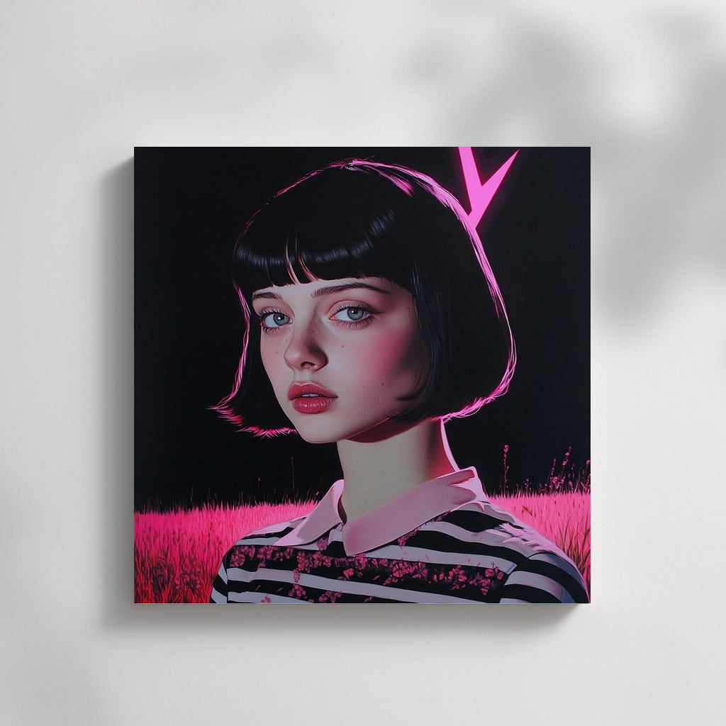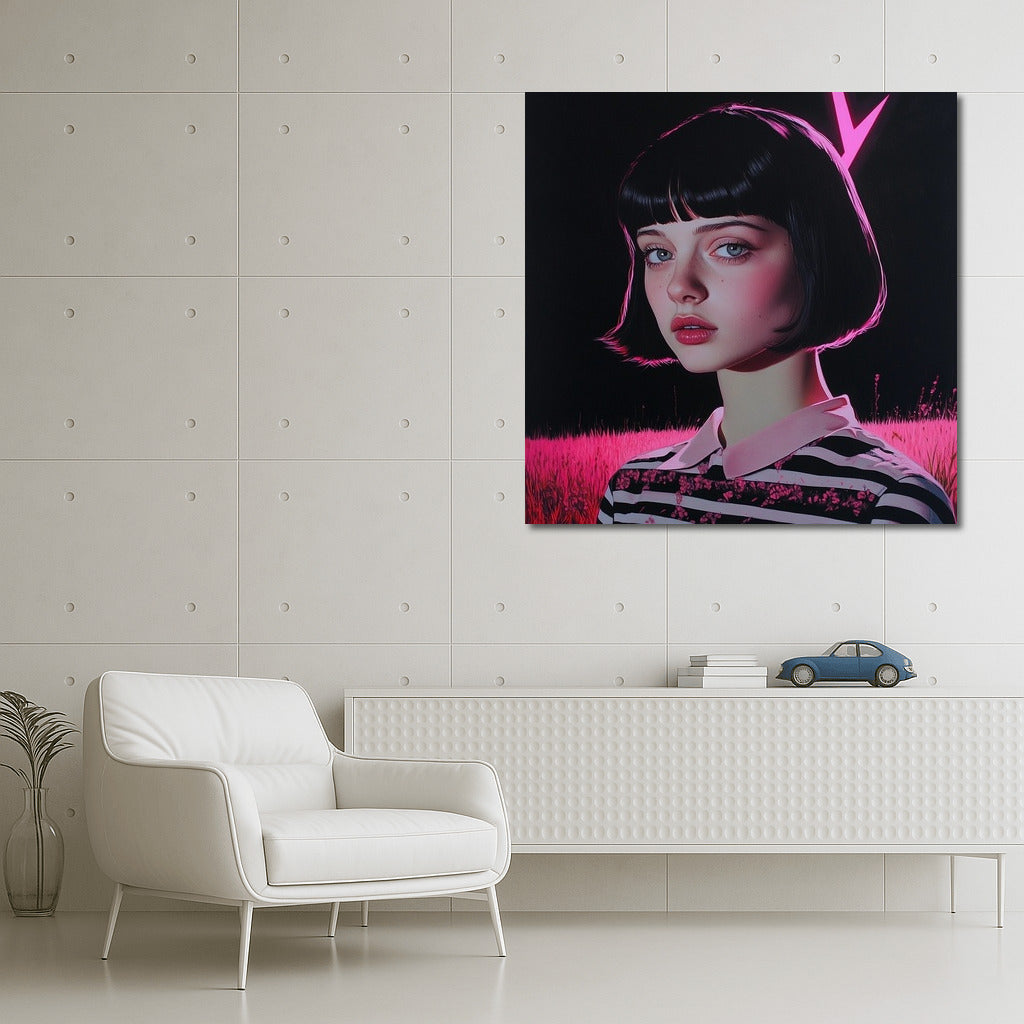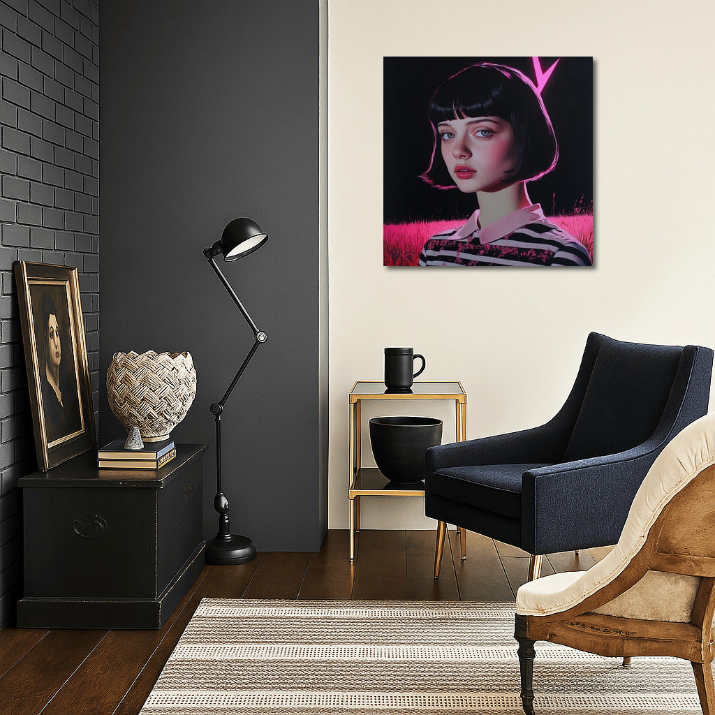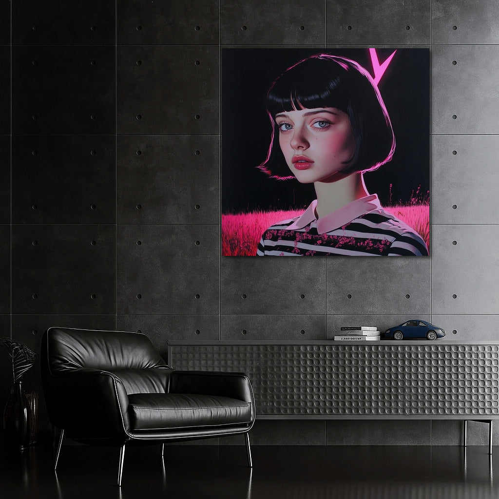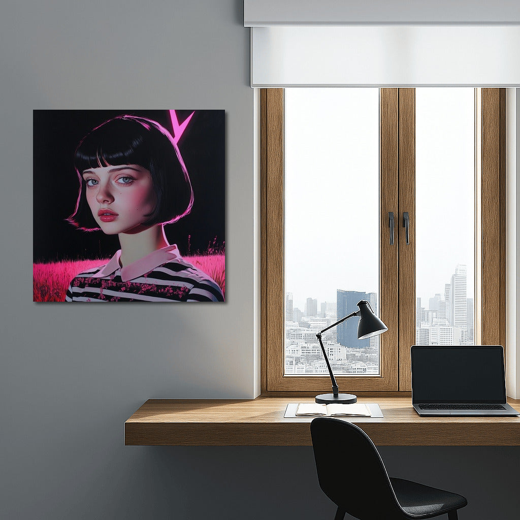 A poster with a mysterious figure on a pink background is the perfect wall art for a stylish interior. See more from the collection: Wall Art with Women
