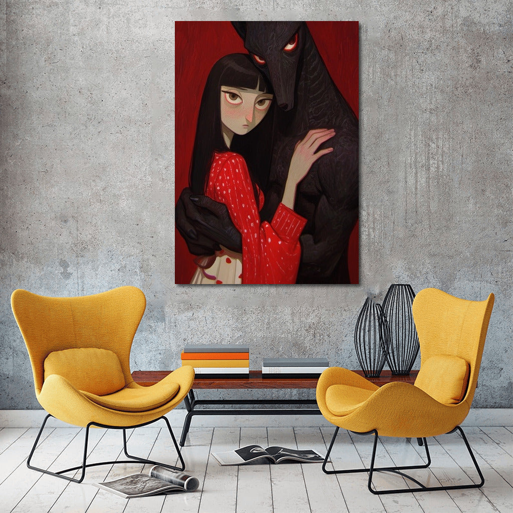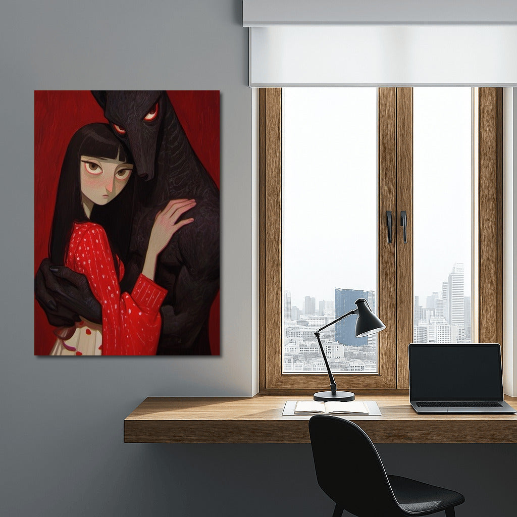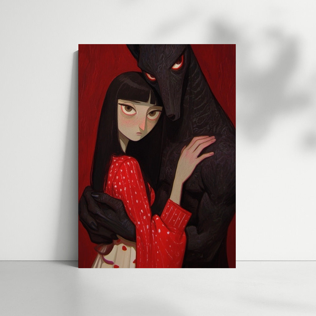 Dark charm and mystical atmosphere - a poster with a girl and a mysterious creature will add mystery to your wall art. See more from the collection: Kids Art