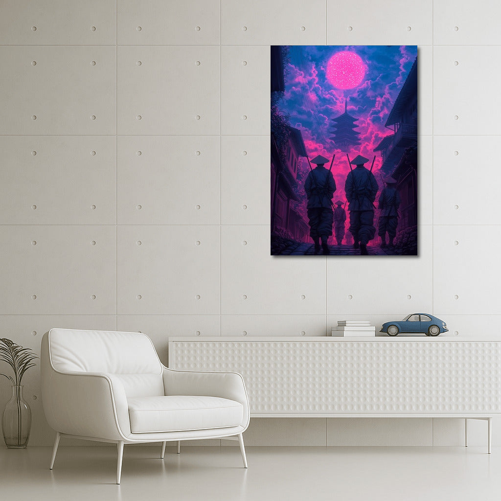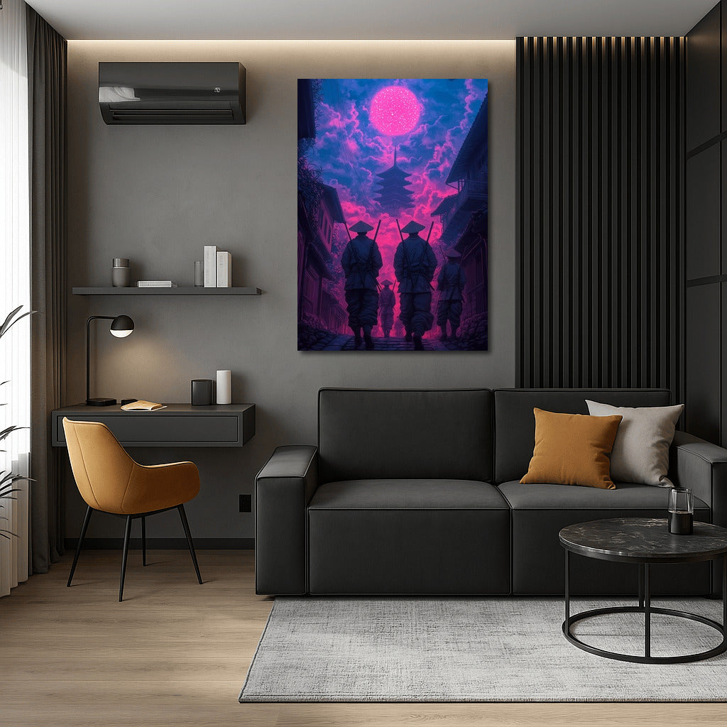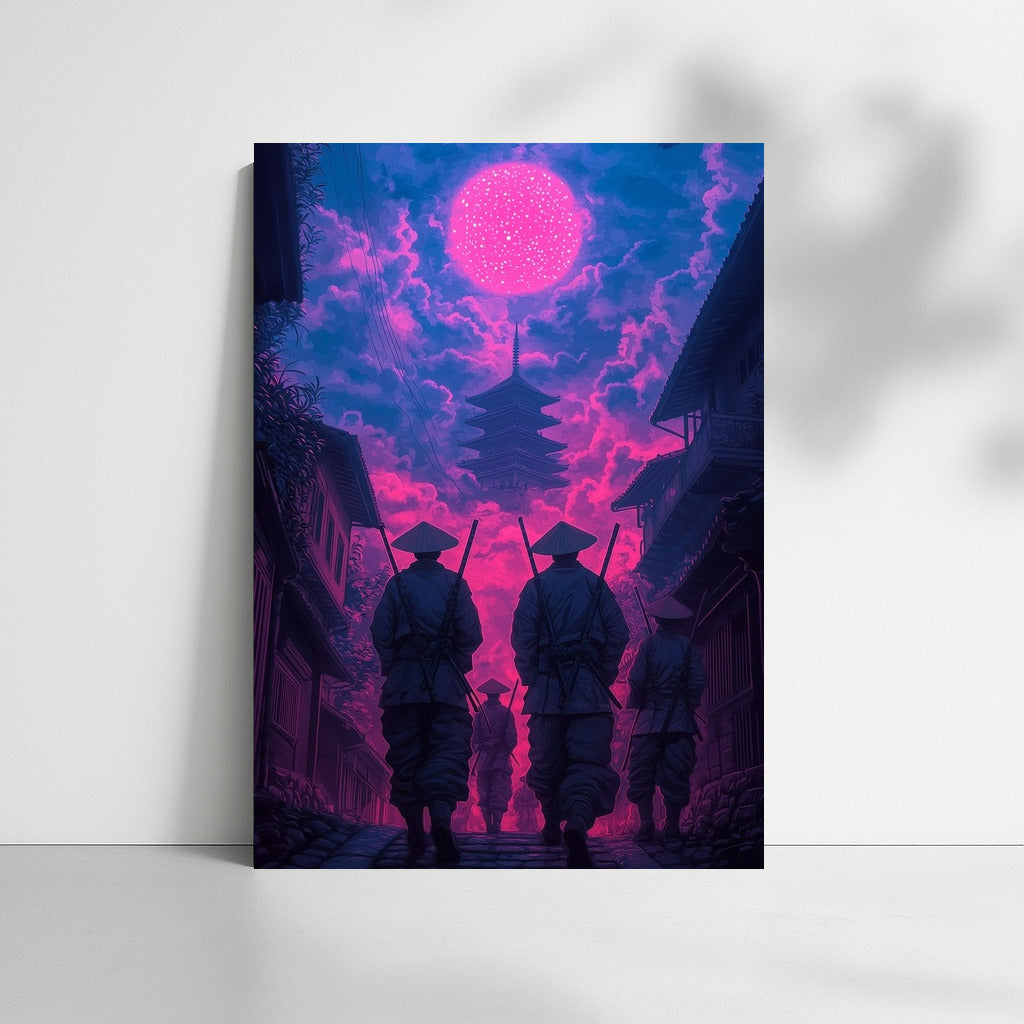 Mysterious figures under a magical sky. This poster will add a mystical oriental atmosphere to your home. Dream wall art! See more from the collection: Neon Art