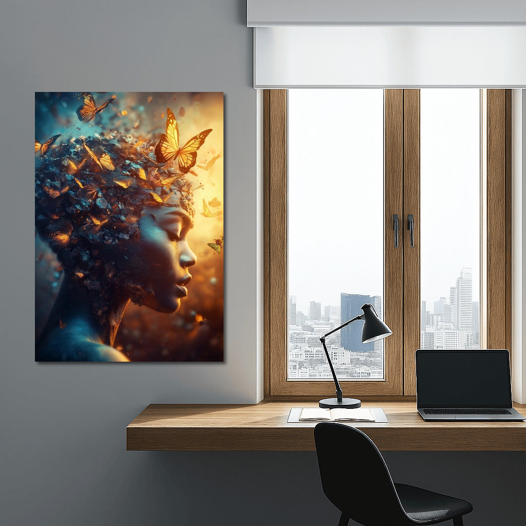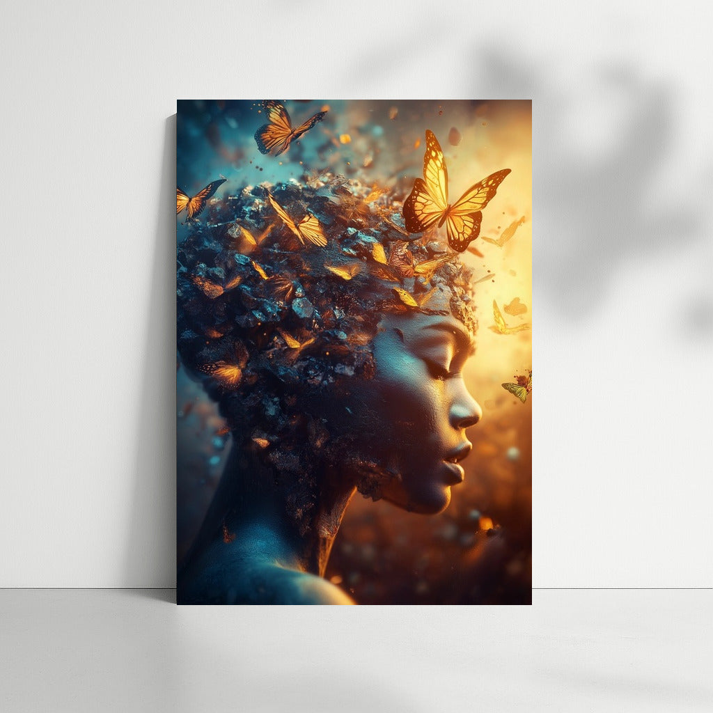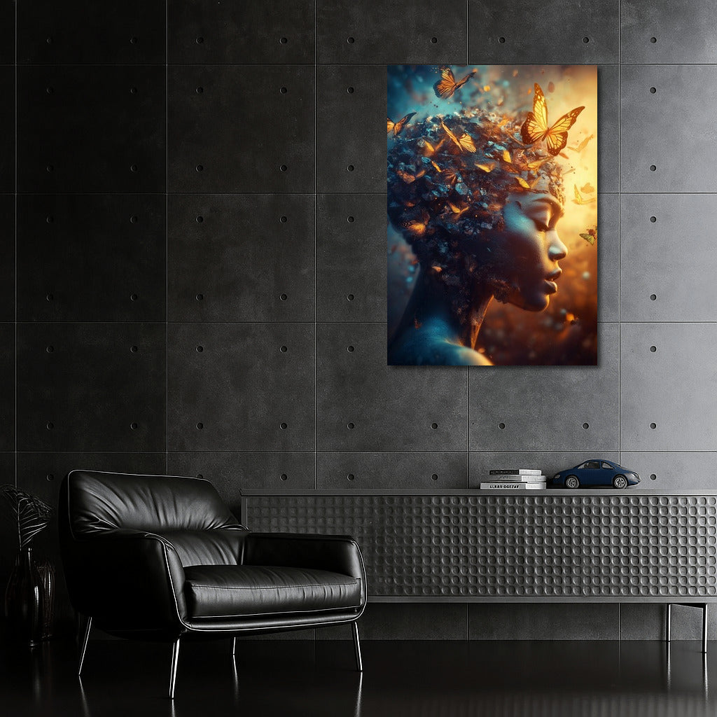 Immerse yourself in magic with this wall art: silhouette and butterflies in a dance of light and shadow. The perfect poster for inspiration. See more from the collection: Mixed Wall Art