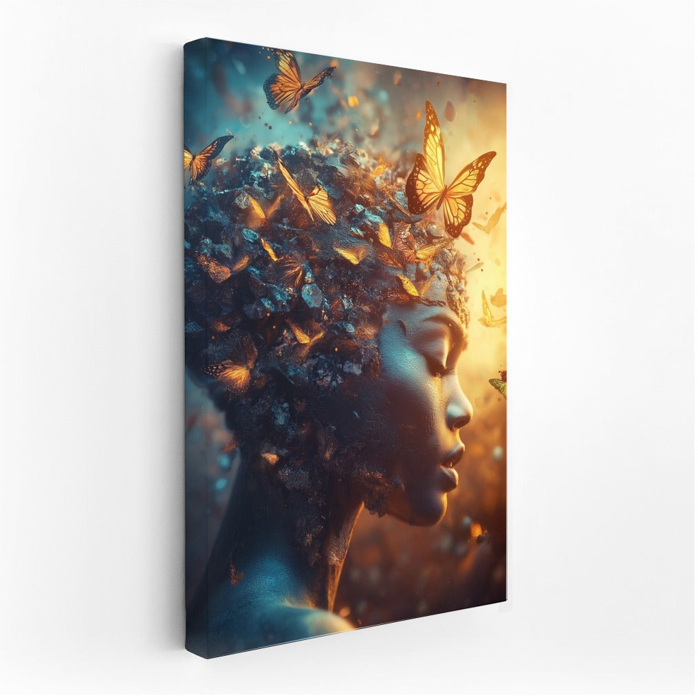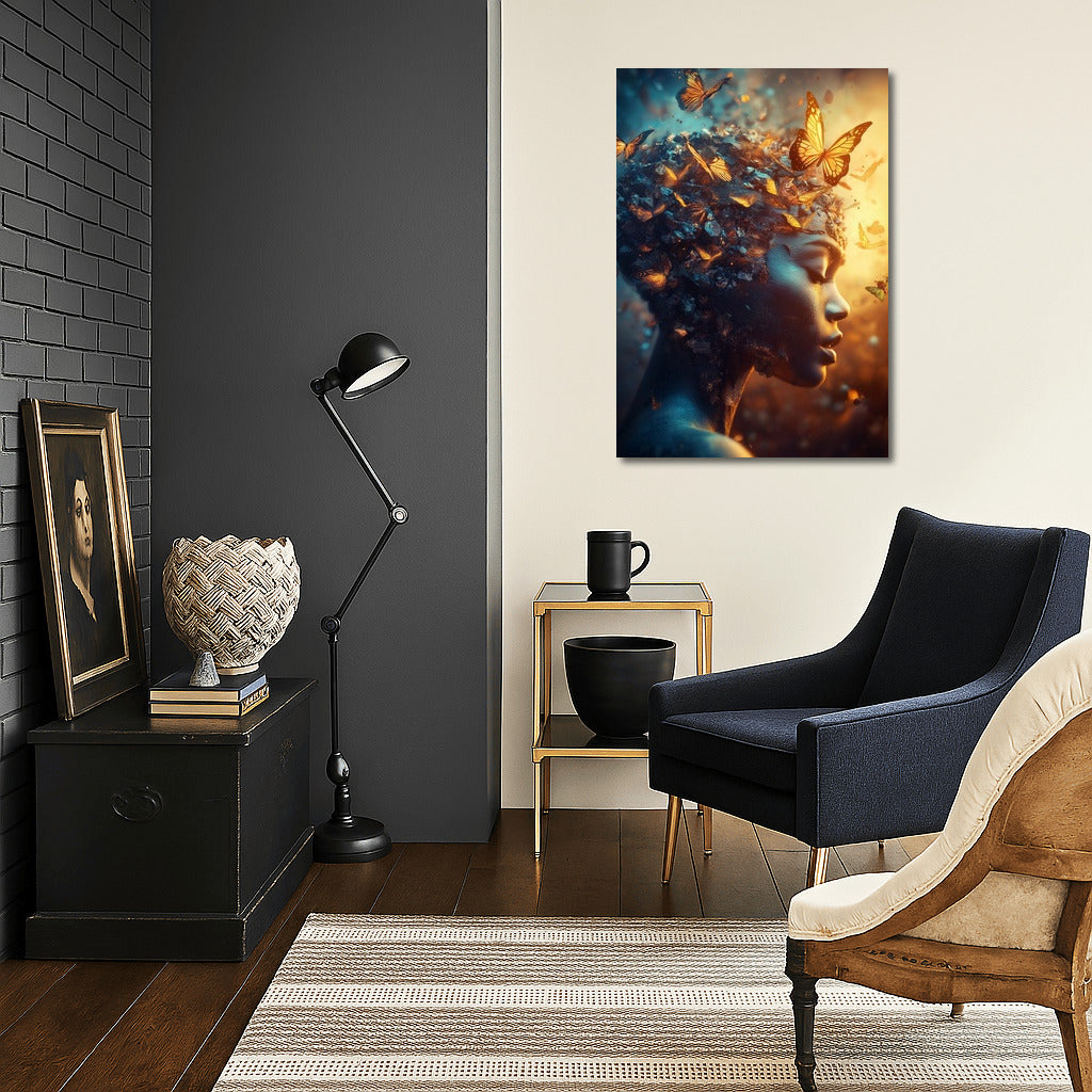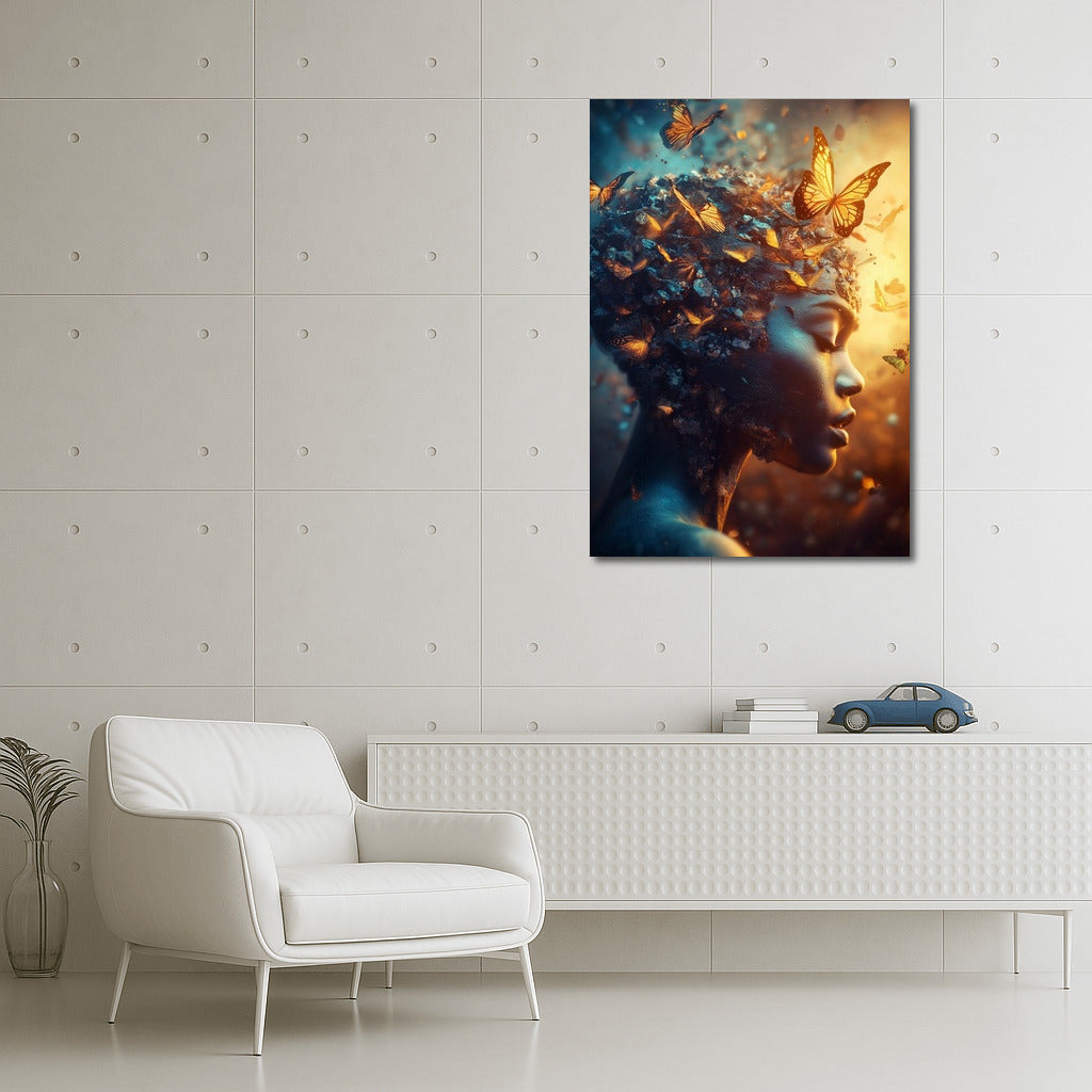 Immerse yourself in magic with this wall art: silhouette and butterflies in a dance of light and shadow. The perfect poster for inspiration. See more from the collection: Mixed Wall Art