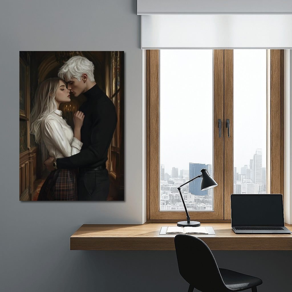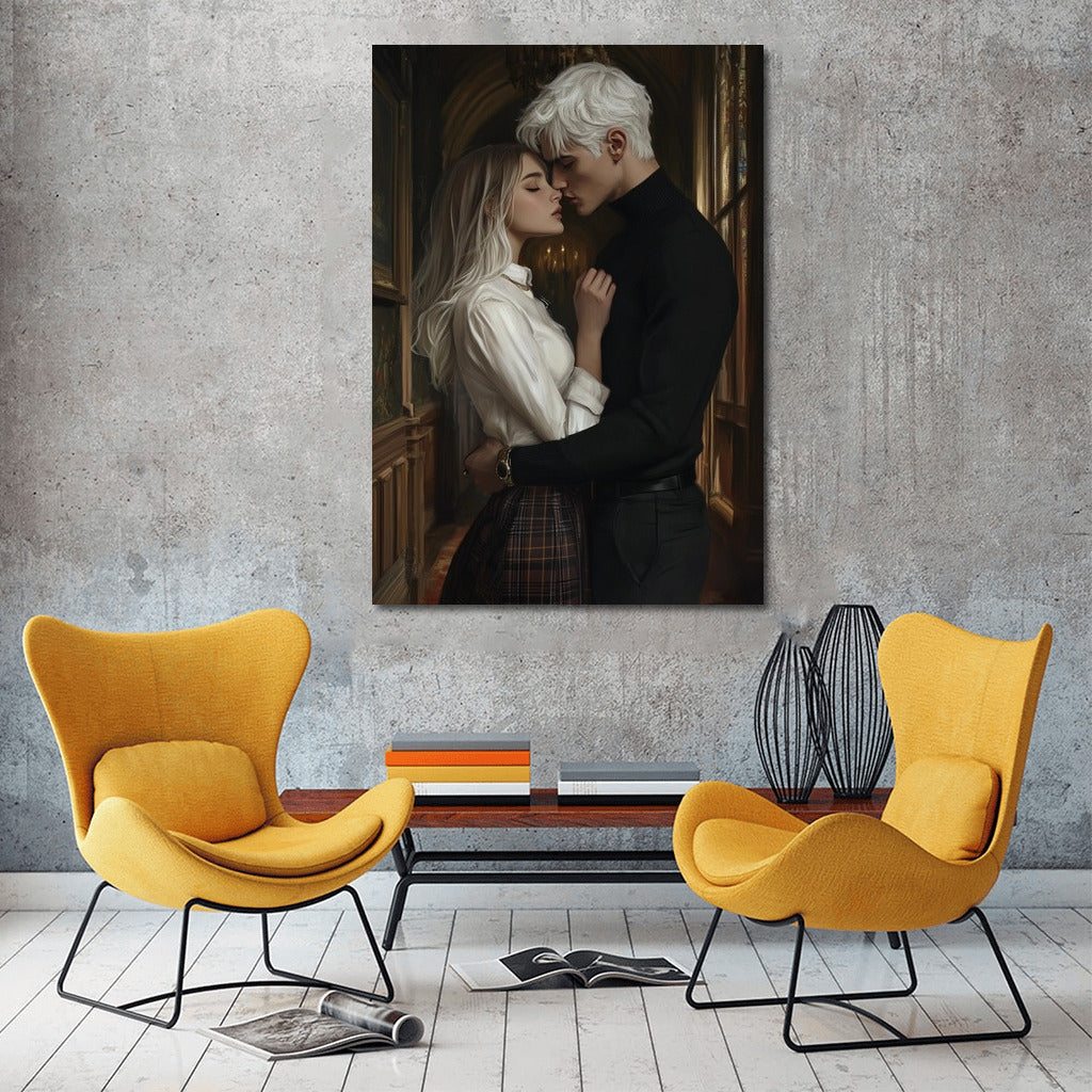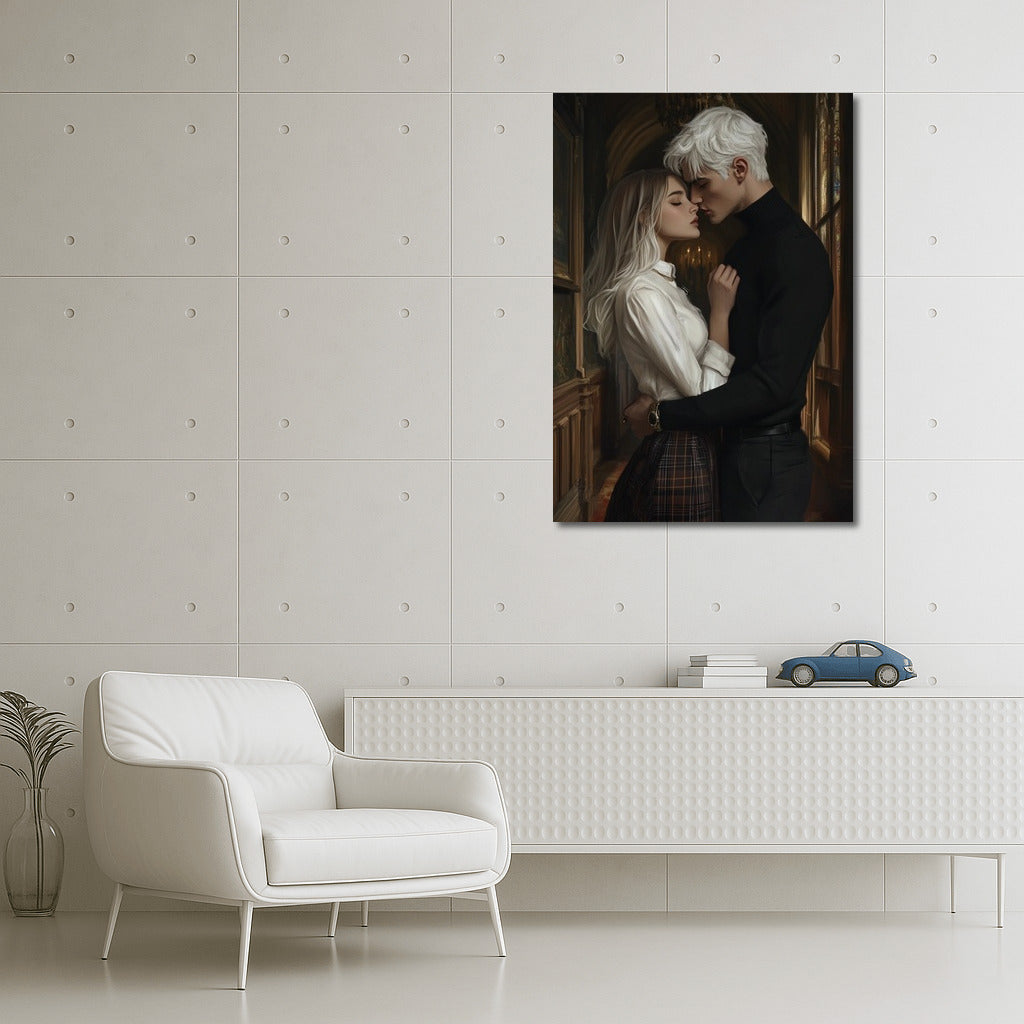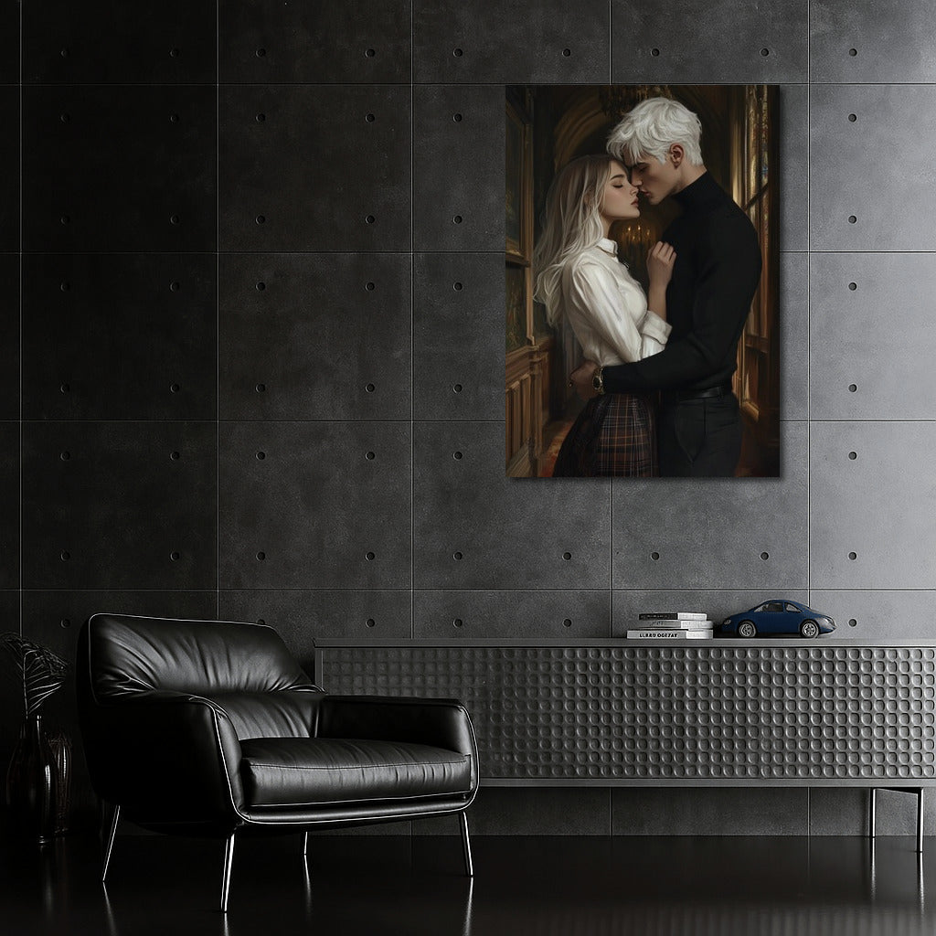 Romance in the shadows: a poster with a sophisticated couple that highlights the atmosphere of wall art and unique elegance. See more from the collection: Love Art