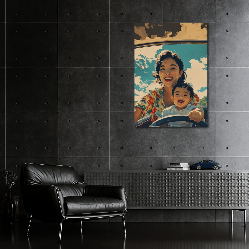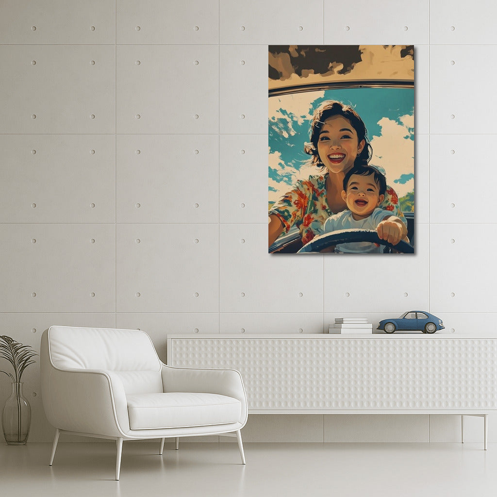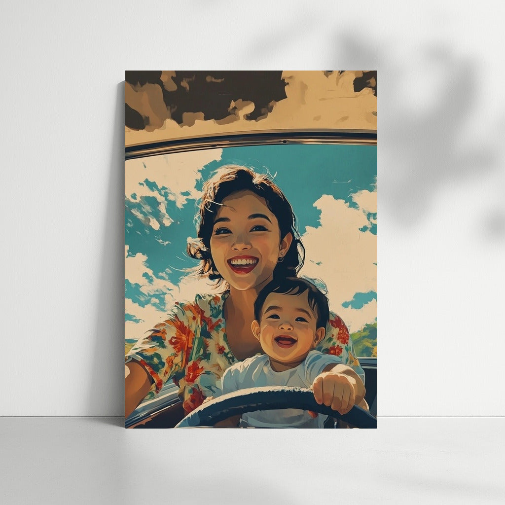 Sunny day, smiles and freedom in motion! Bright poster conveys the joy of travel, perfect wall art. See more from the collection: Mixed Wall Art