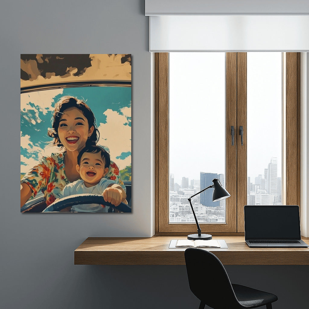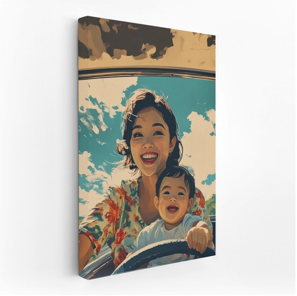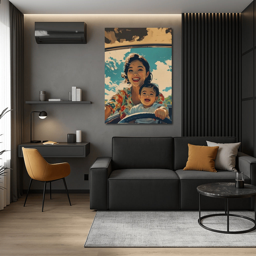 Sunny day, smiles and freedom in motion! Bright poster conveys the joy of travel, perfect wall art. See more from the collection: Mixed Wall Art