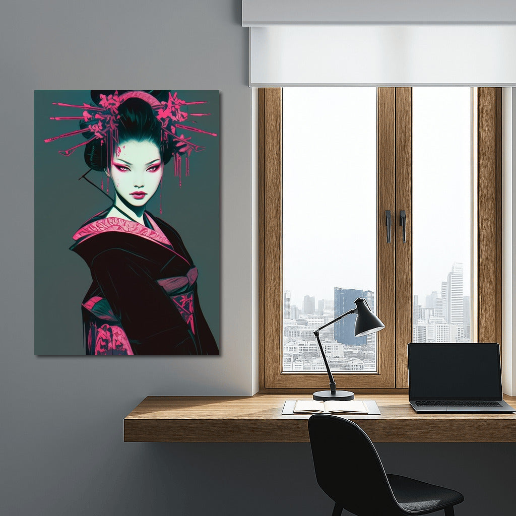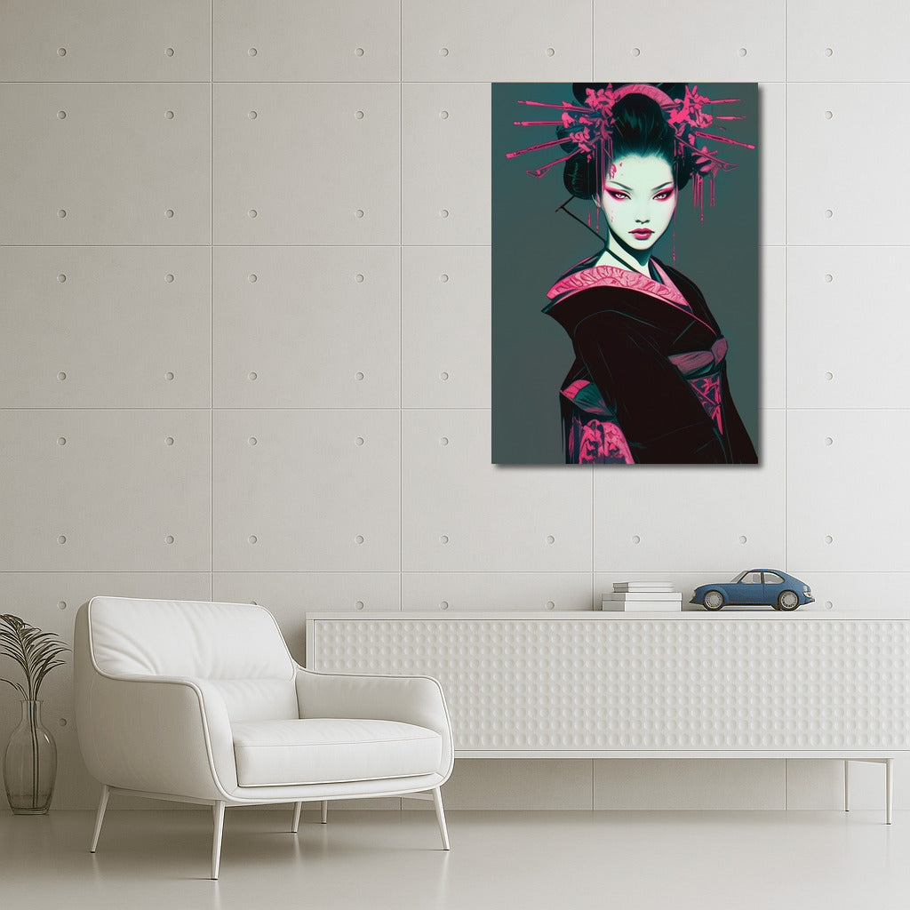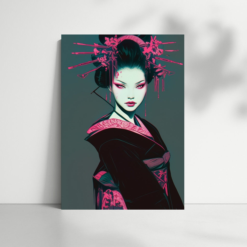 Delicate wall art: a mysterious figure in a traditional kimono and bright colors brings life to the space. See more from the collection: Anime & Manga genres Art