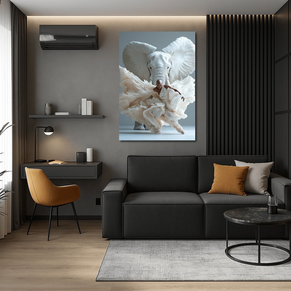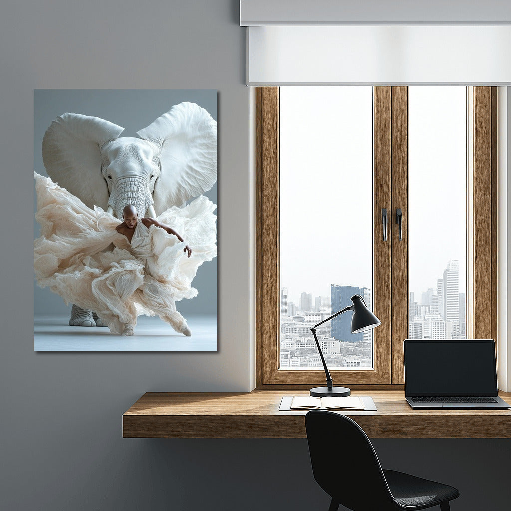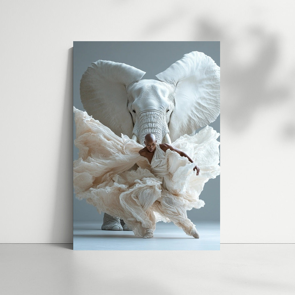 A graceful wall art where the grace of dance merges with the majesty of an elephant. A perfect poster for inspiration and strength. See more from the collection: Mixed Wall Art