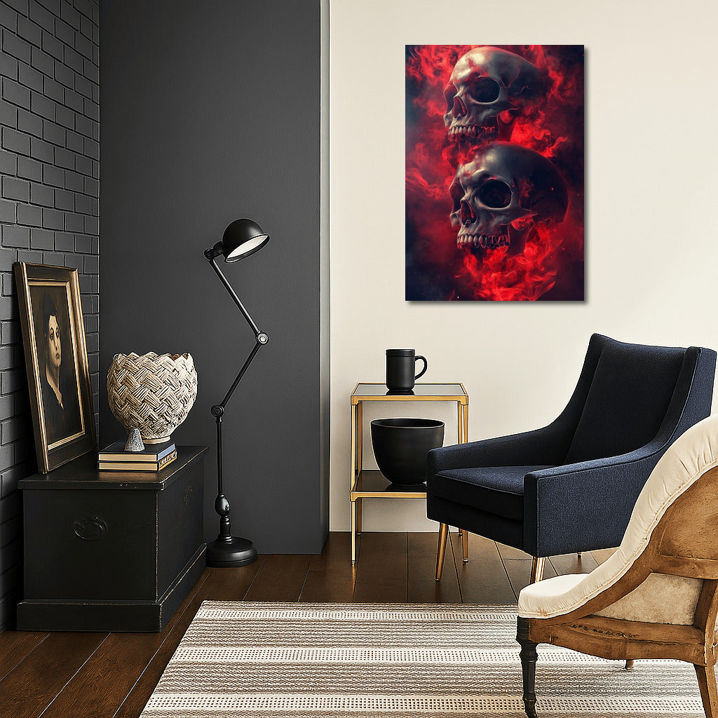 Two skulls in a fiery haze create a captivating poster. Feel the power and mysticism of wall art! See more from the collection: Mixed Wall Art