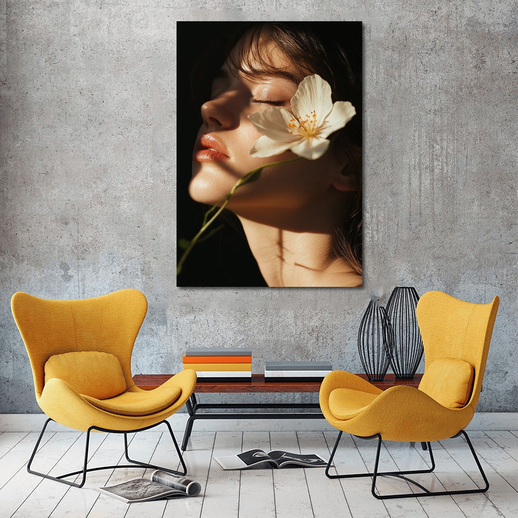 Elegant painting: subtle beauty in the shadow of the flower, creating the magic of wall art to inspire your interior. See more from the collection: Wall Art with Women