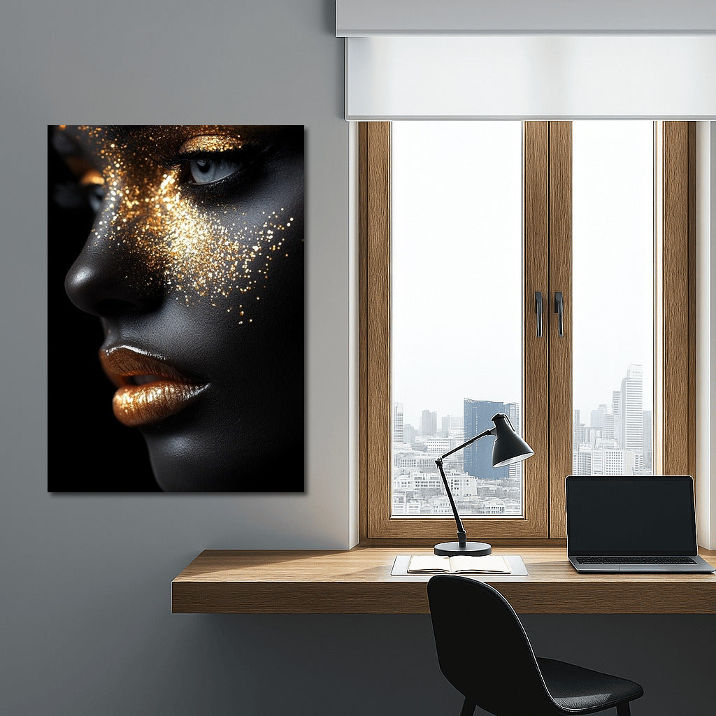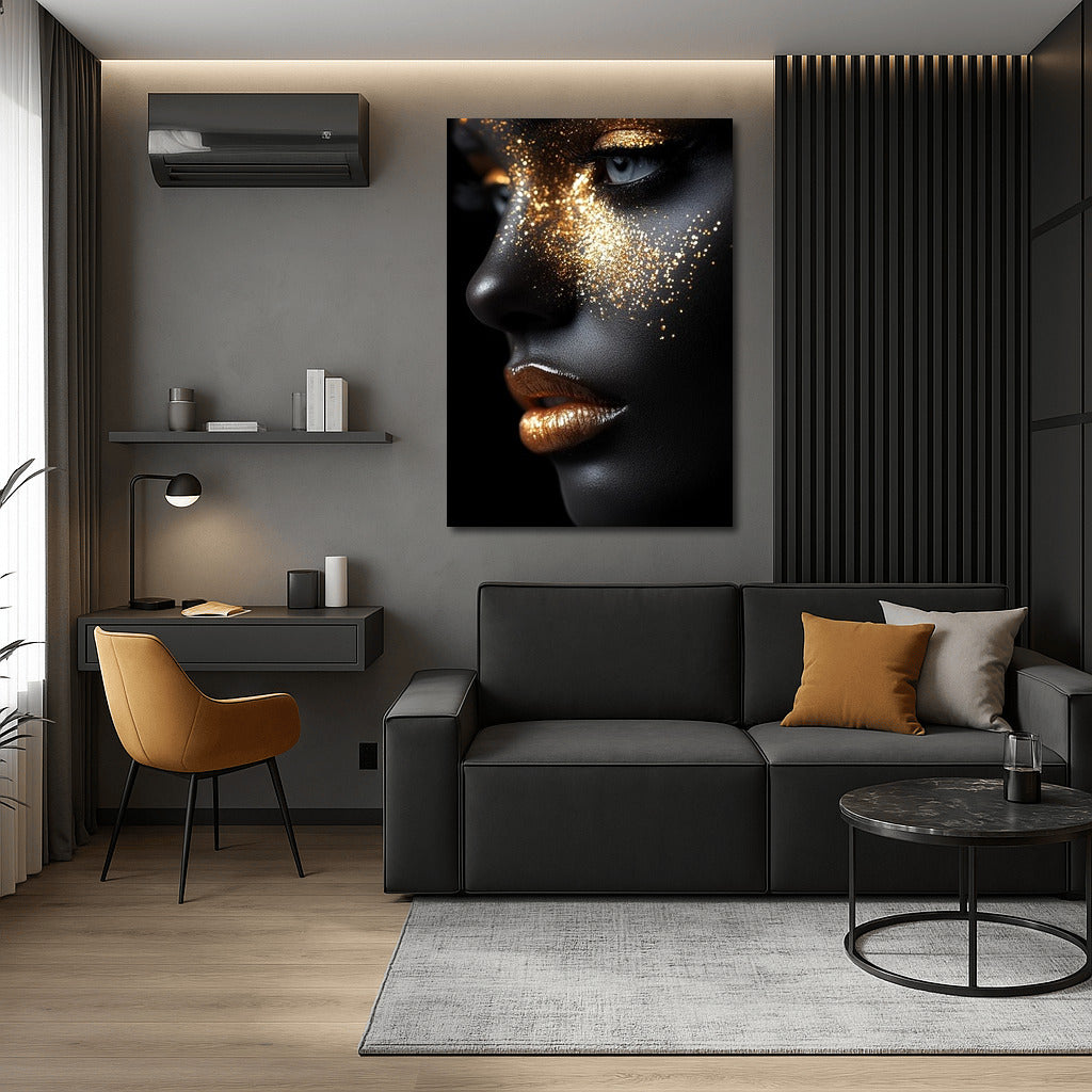 Art of Glitter: This poster embodies the mysterious world of gold and darkness, creating an unforgettable wall decoration. See more from the collection: Mixed Wall Art