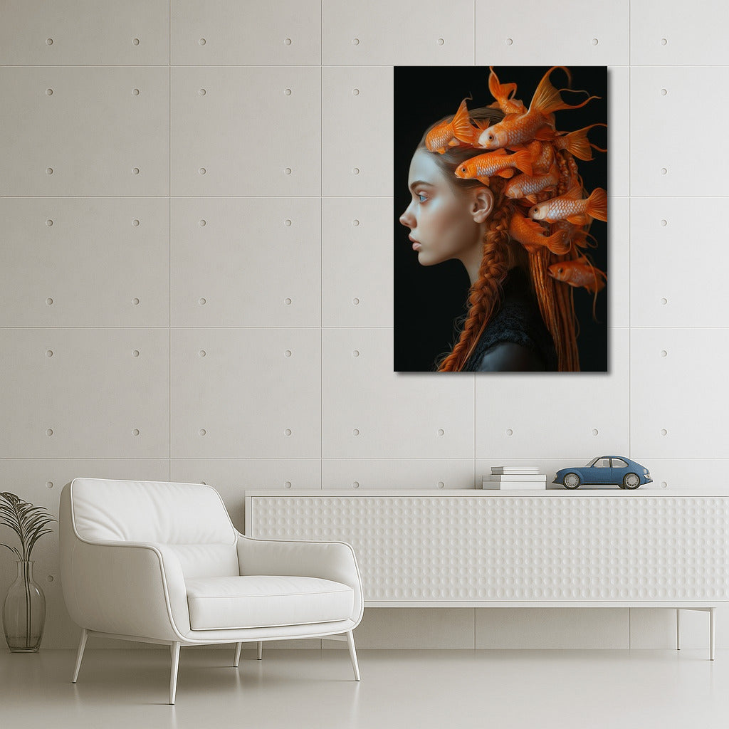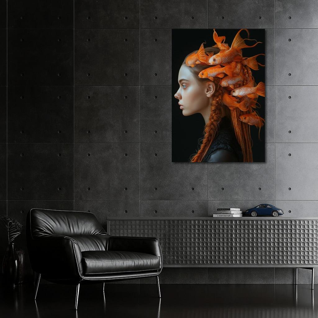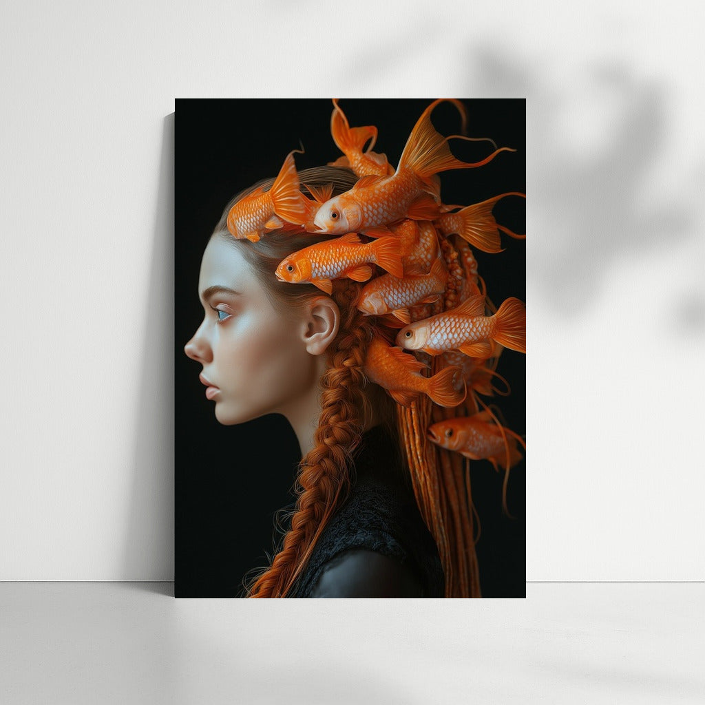 Dive into the magic! This poster takes you to a fantasy world where goldfish come to life in wall art. See more from the collection: Animals Art