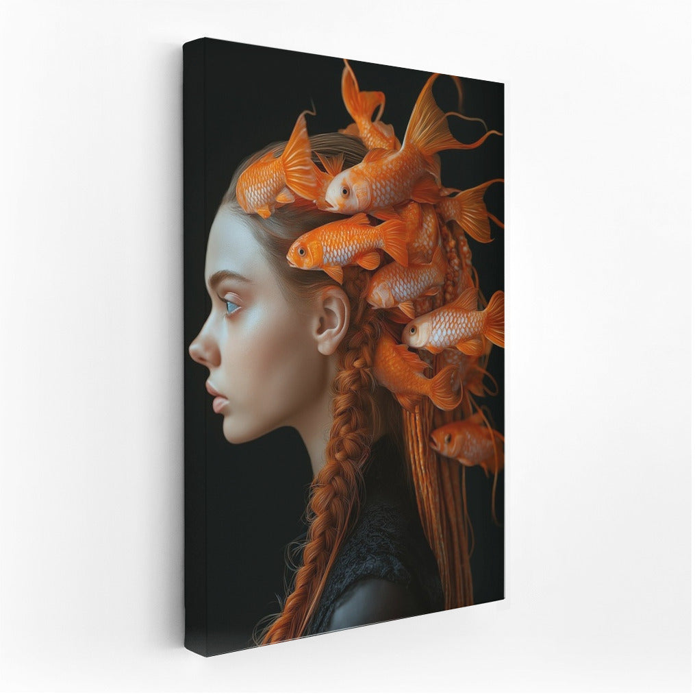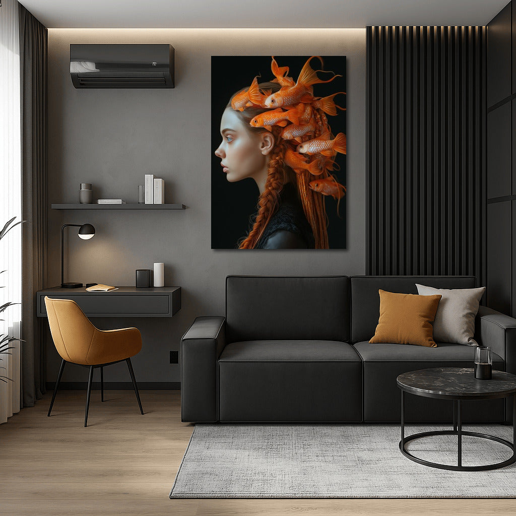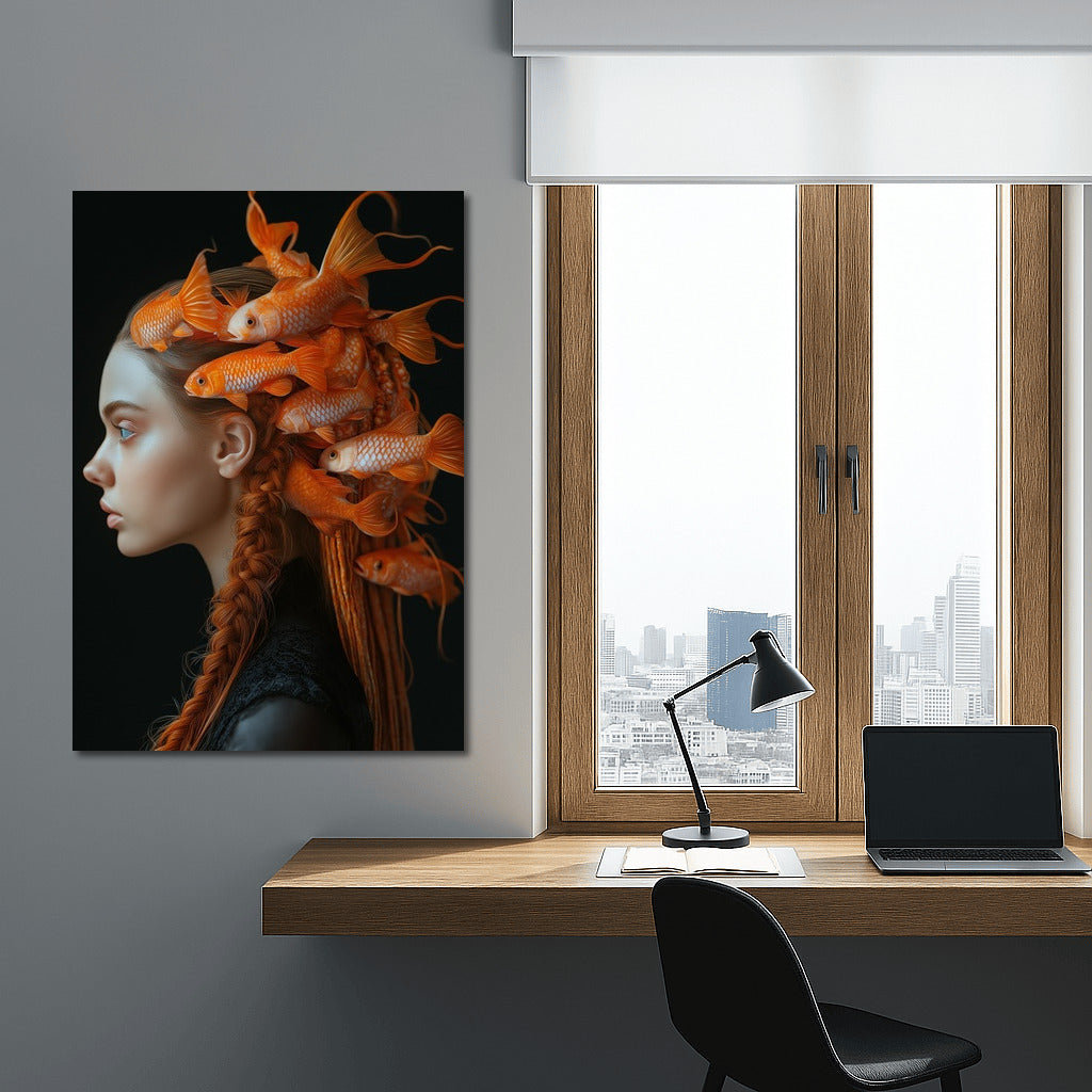 Dive into the magic! This poster takes you to a fantasy world where goldfish come to life in wall art. See more from the collection: Animals Art