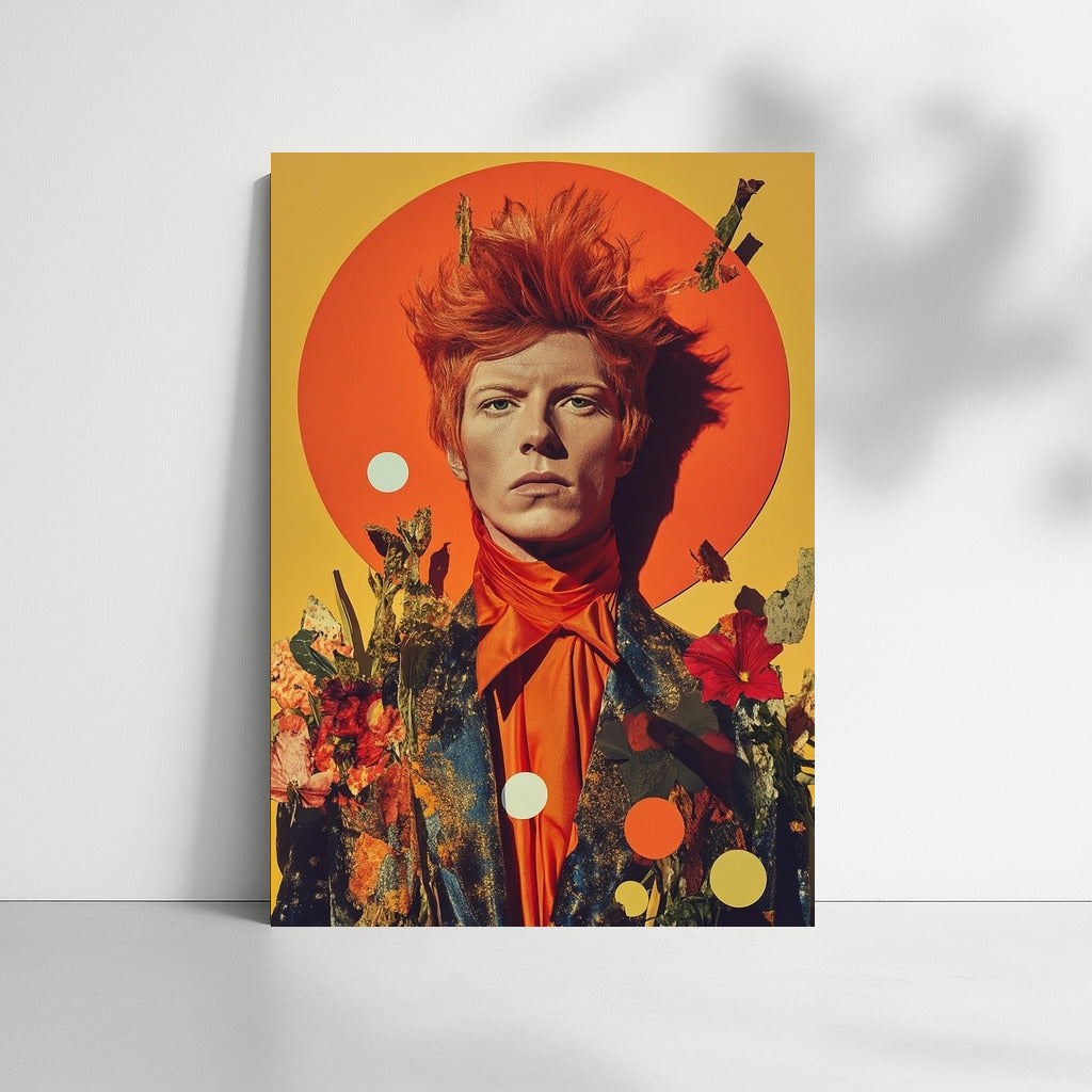 An abstract explosion of color and form: a poster with a mysterious figure surrounded by colorful fantasies. Wall art that inspires you to dream. See more from the collection: Mixed Wall Art