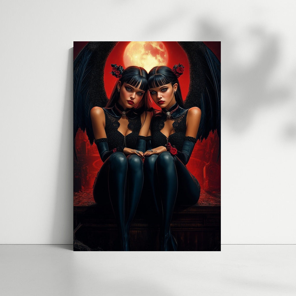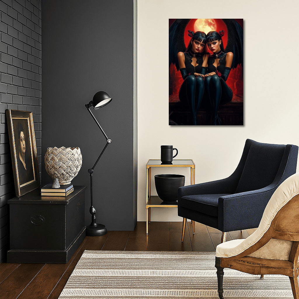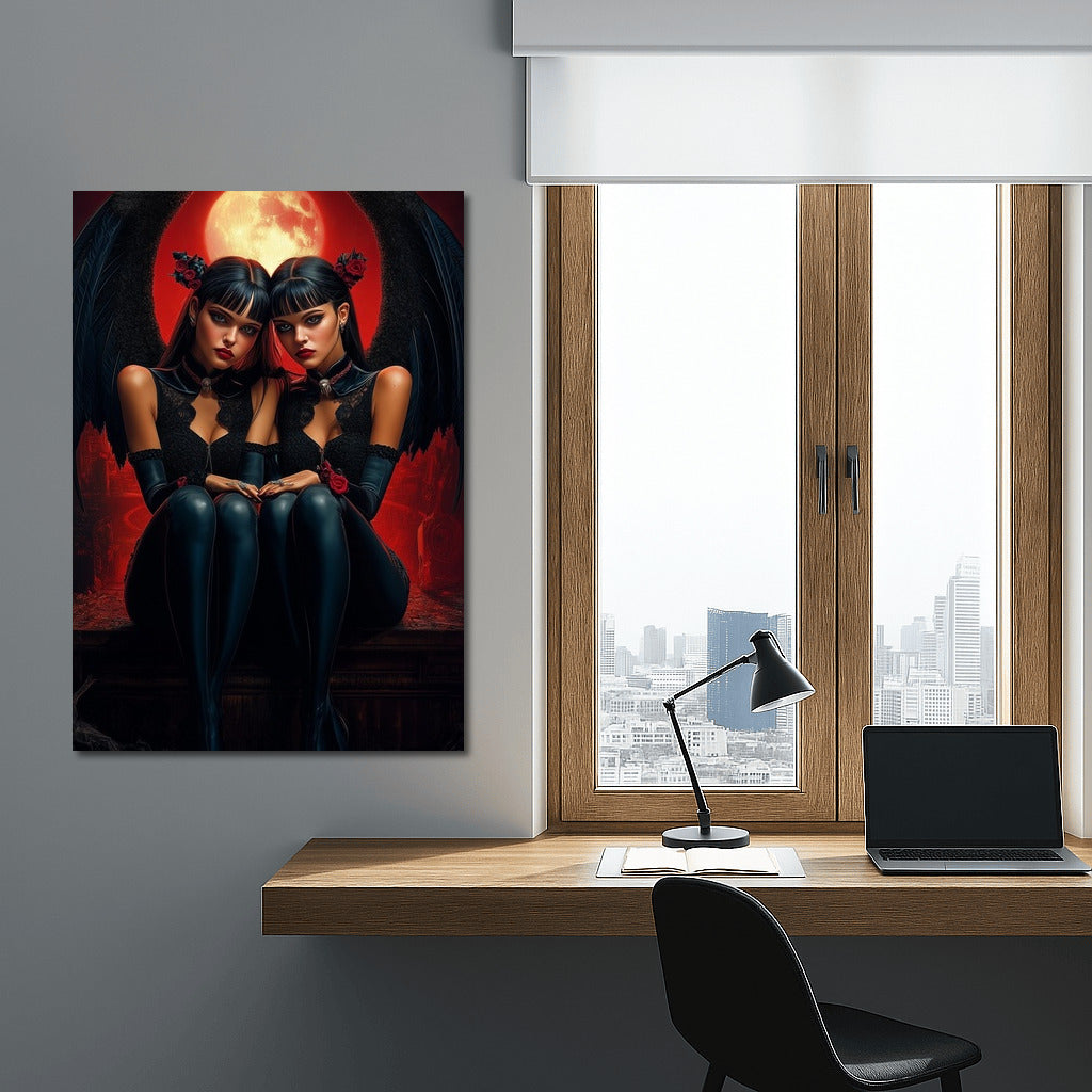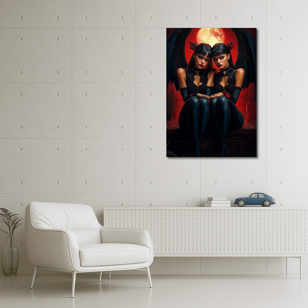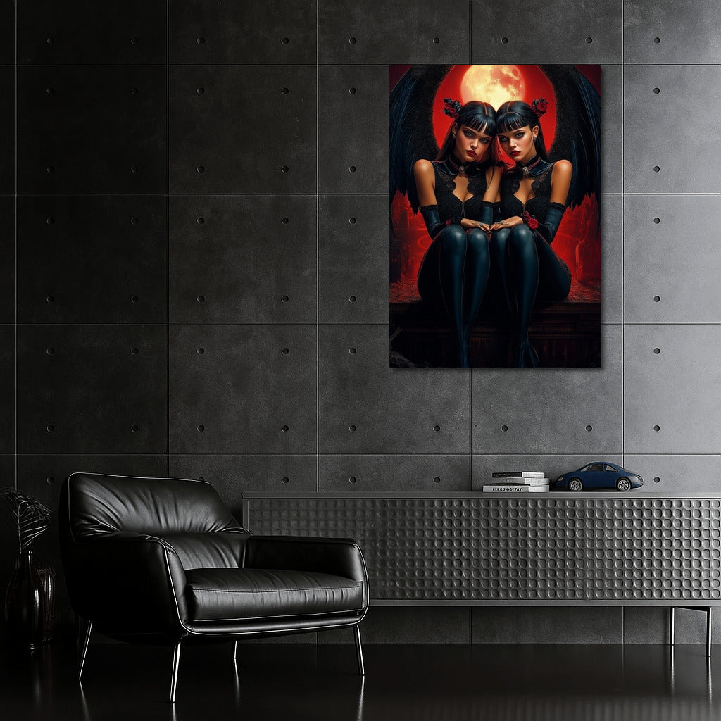 Dark Wings and Full Moon: Enigmatic wall art where mysterious images come to life in the rays of night light. See more from the collection: Wall Art with Women